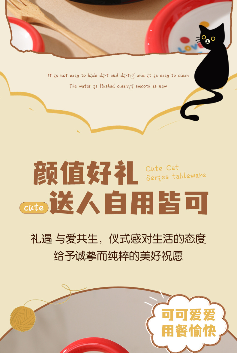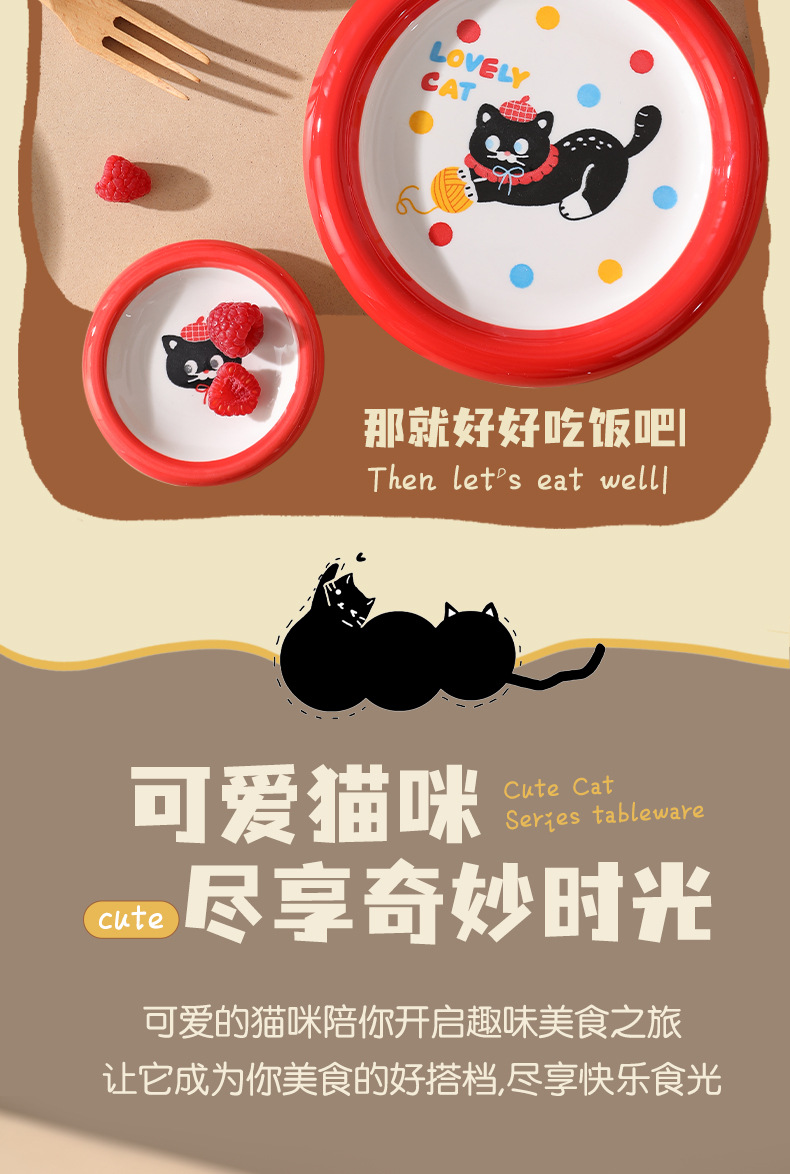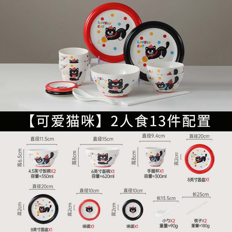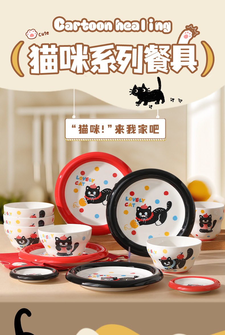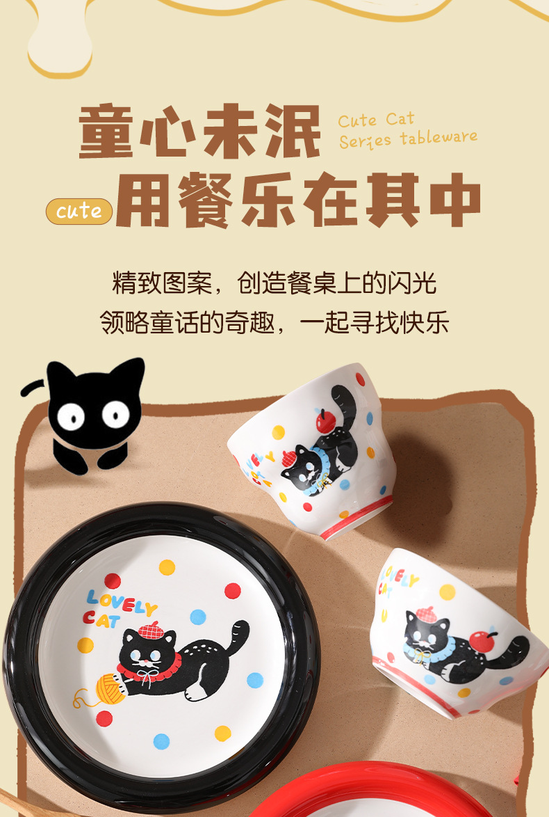 세라믹 그릇 접시 높은 색상 가치 세라믹 식기 선물 상자 사용자 정의 만화 귀여운 고양이 요리 세트 조합스토어 가기