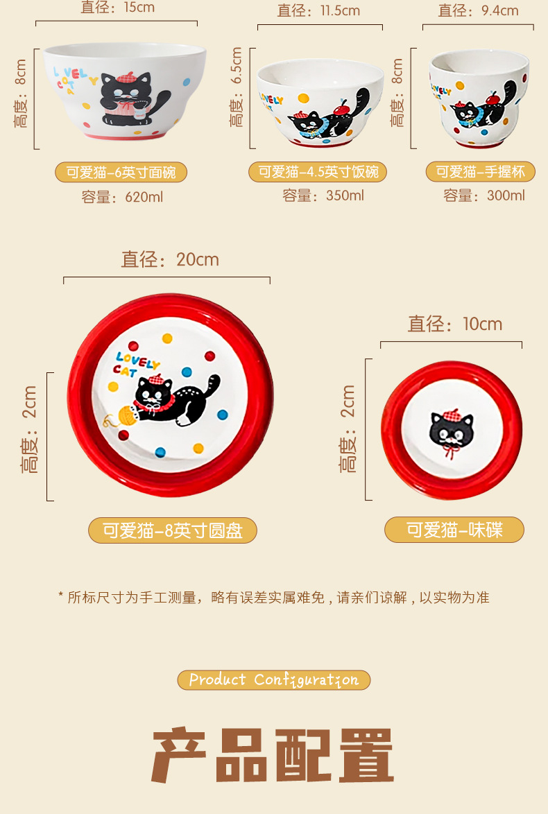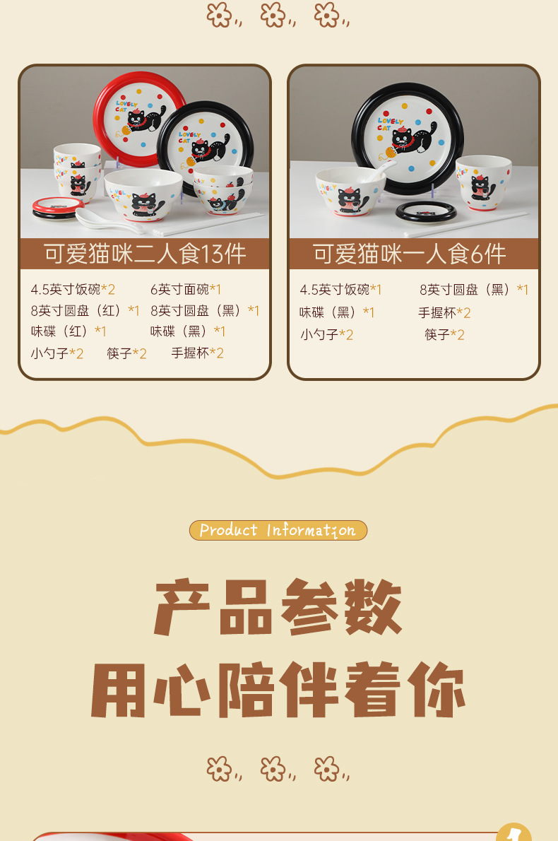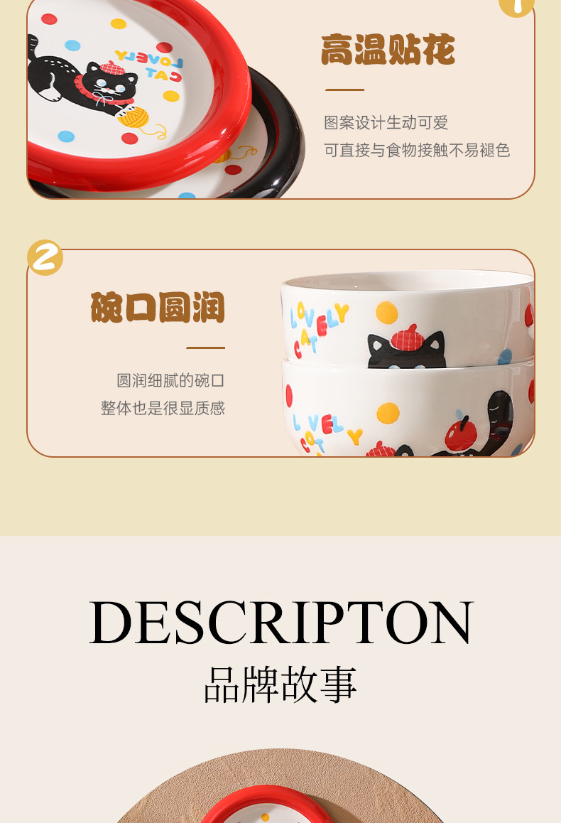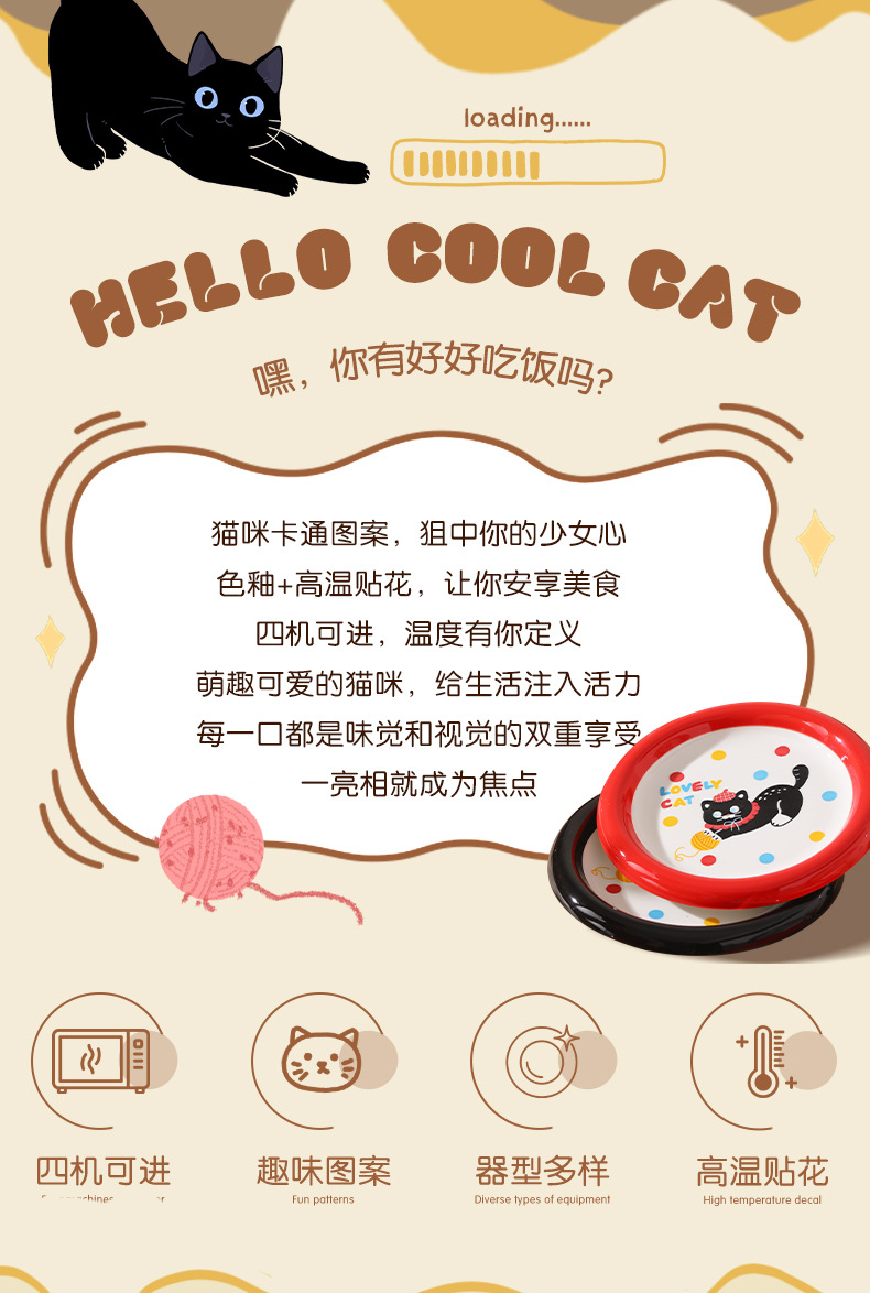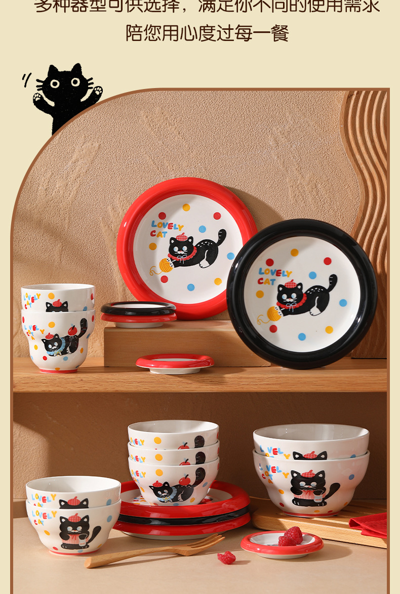 세라믹 그릇 접시 높은 색상 가치 세라믹 식기 선물 상자 사용자 정의 만화 귀여운 고양이 요리 세트 조합스토어 가기