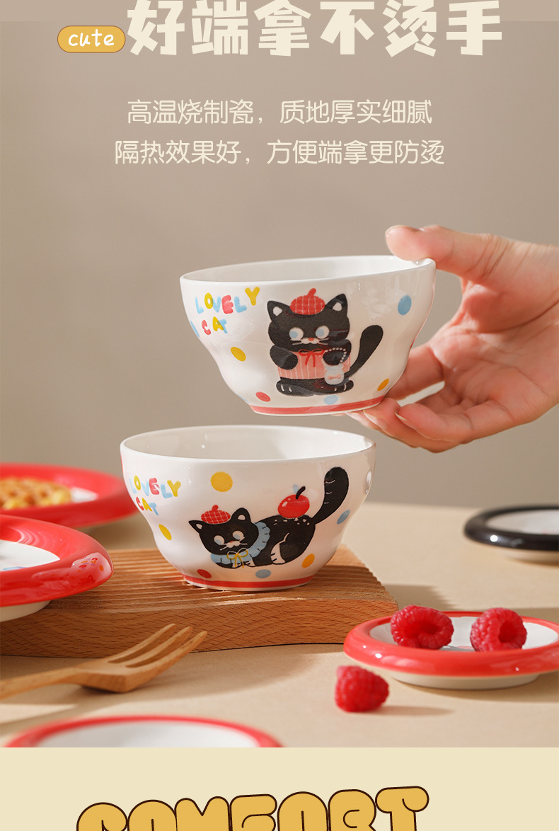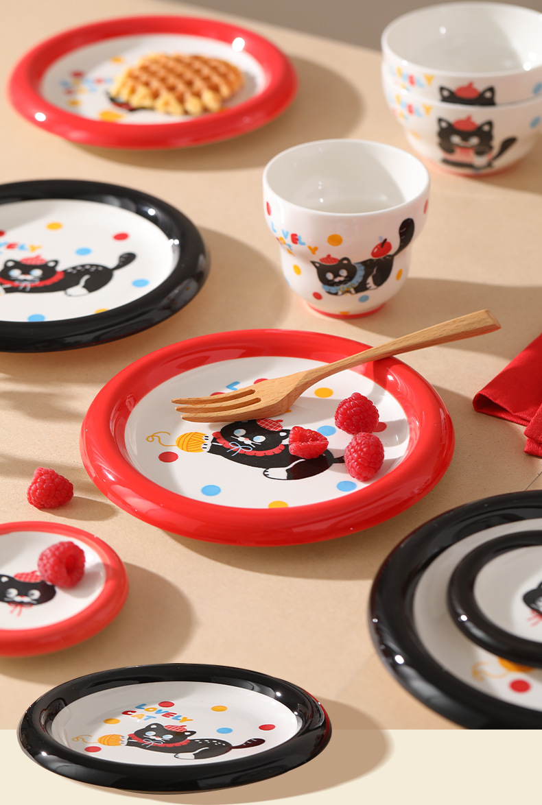 세라믹 그릇 접시 높은 색상 가치 세라믹 식기 선물 상자 사용자 정의 만화 귀여운 고양이 요리 세트 조합