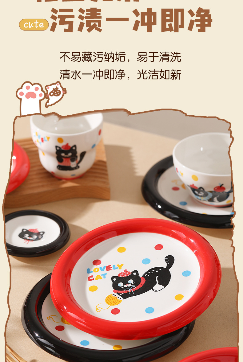 • 7.5inch 둥근 모서리 접시-귀여운 고양이-블랙