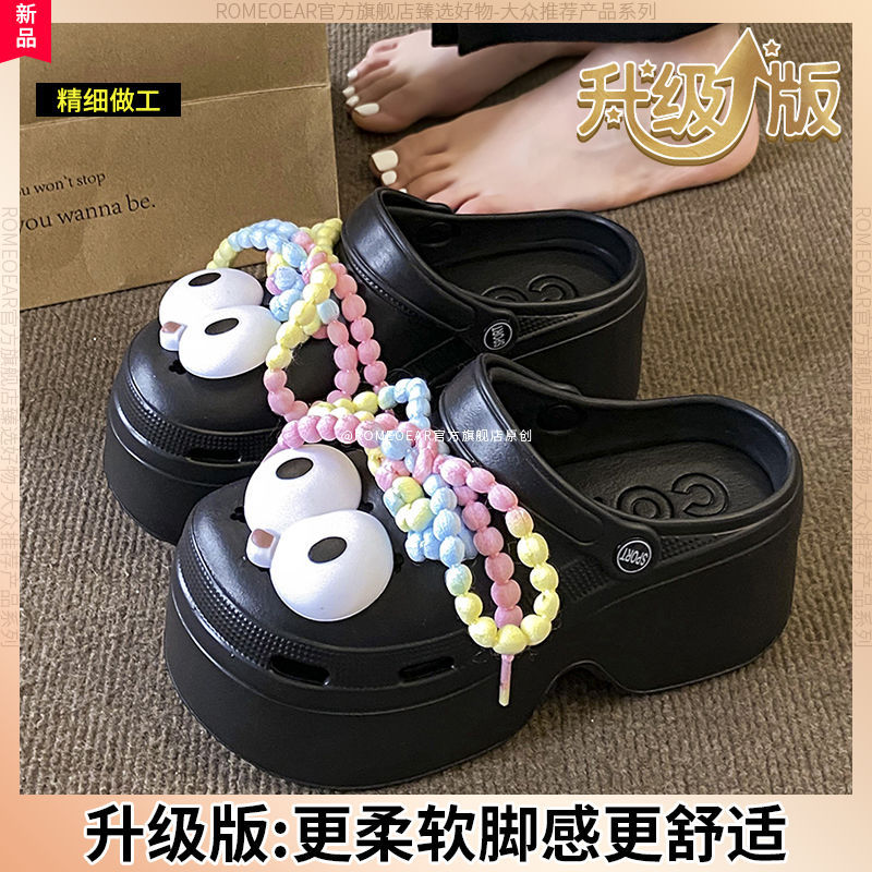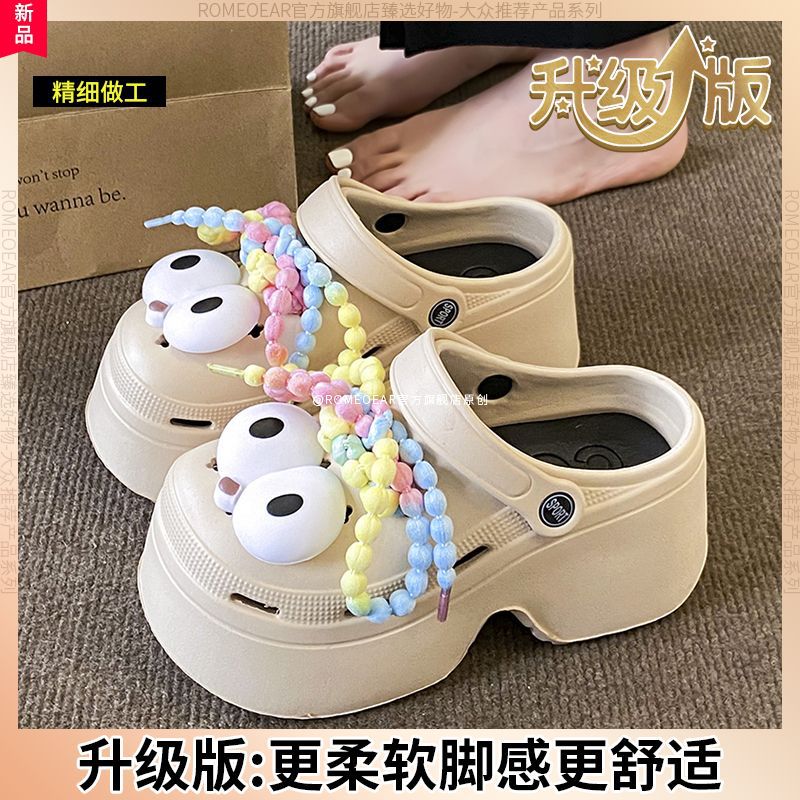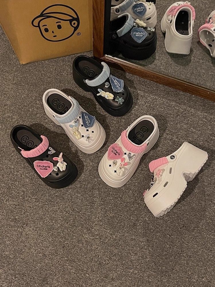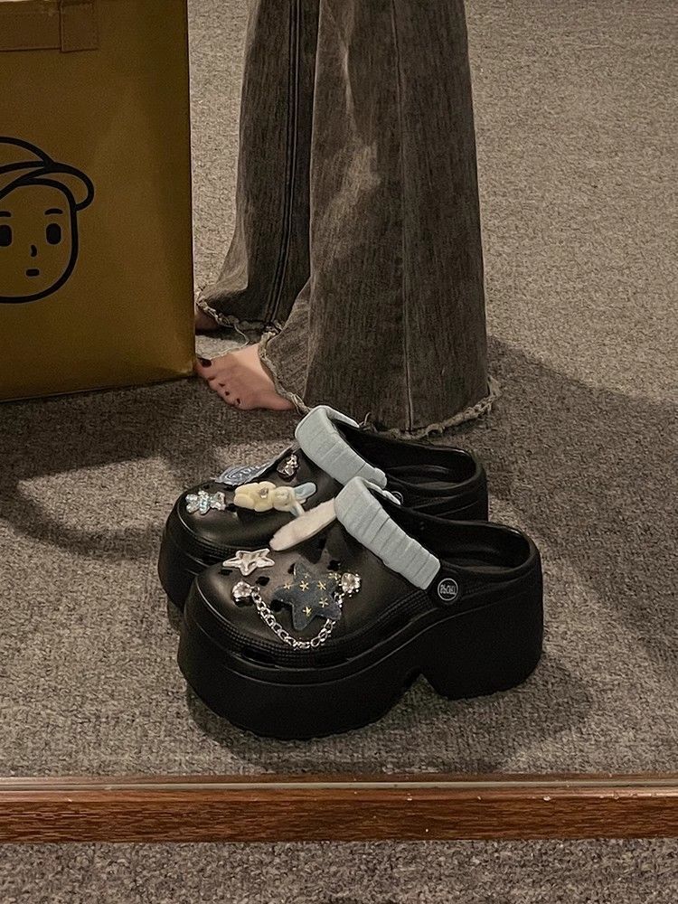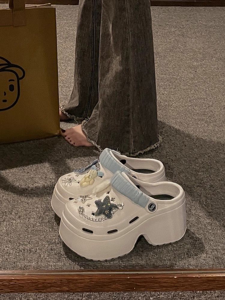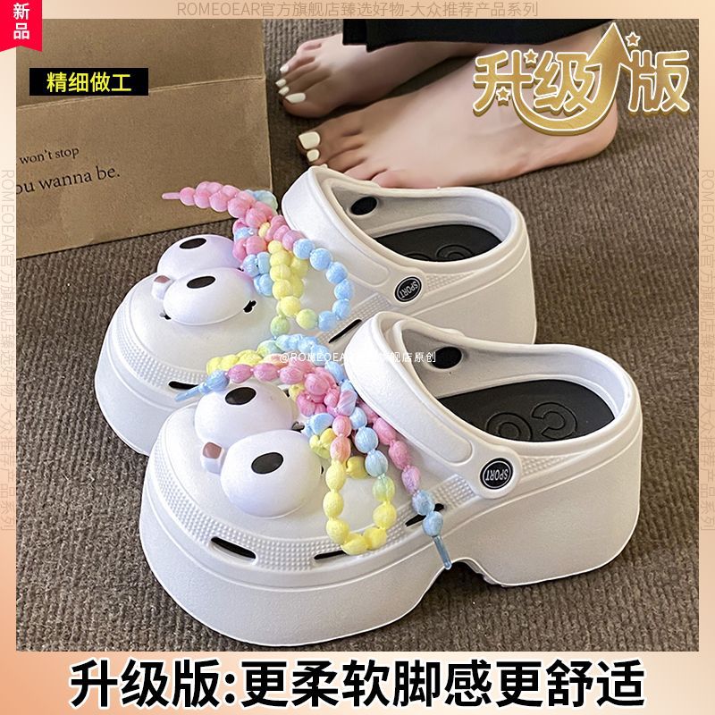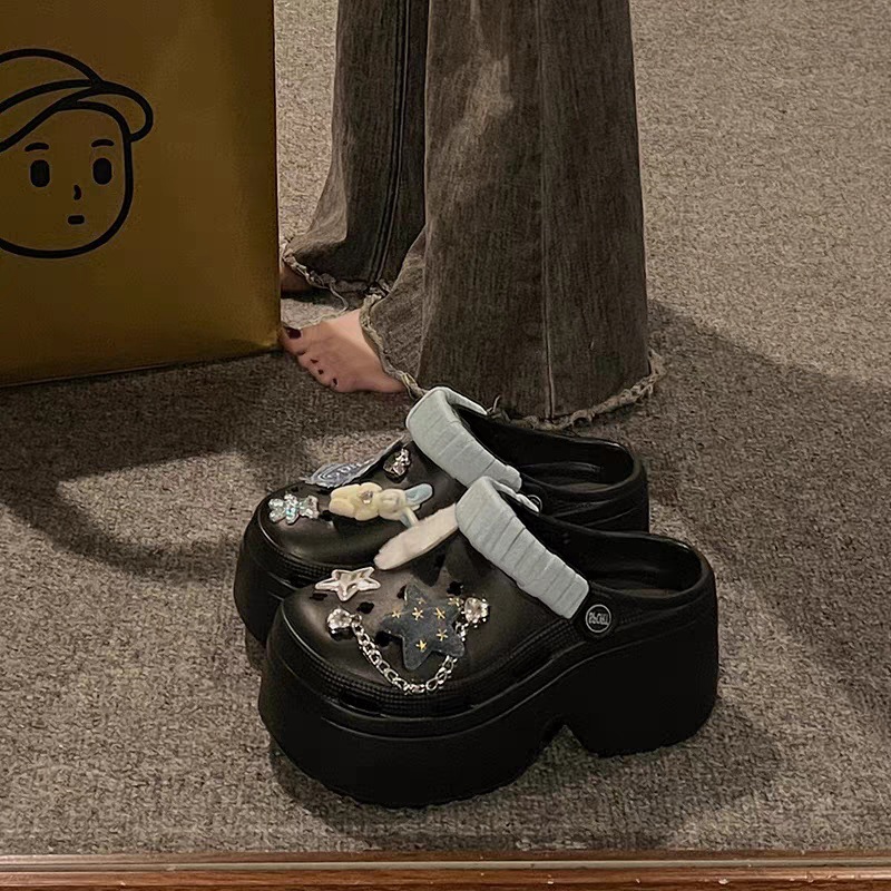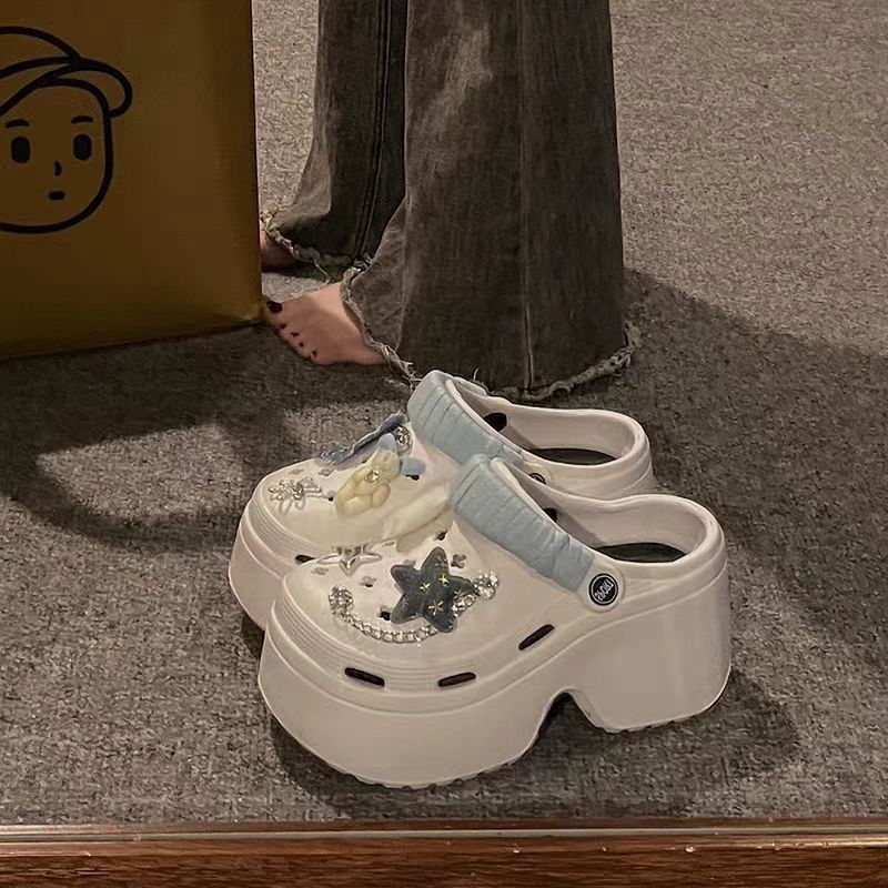 귀여운 만화 파란색과 흰색 체인 플랫폼 동굴 신발 여성 의상 2024 여름 새로운 스타일 슬립 온 투웨어 샌들스토어 가기