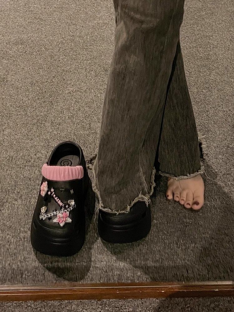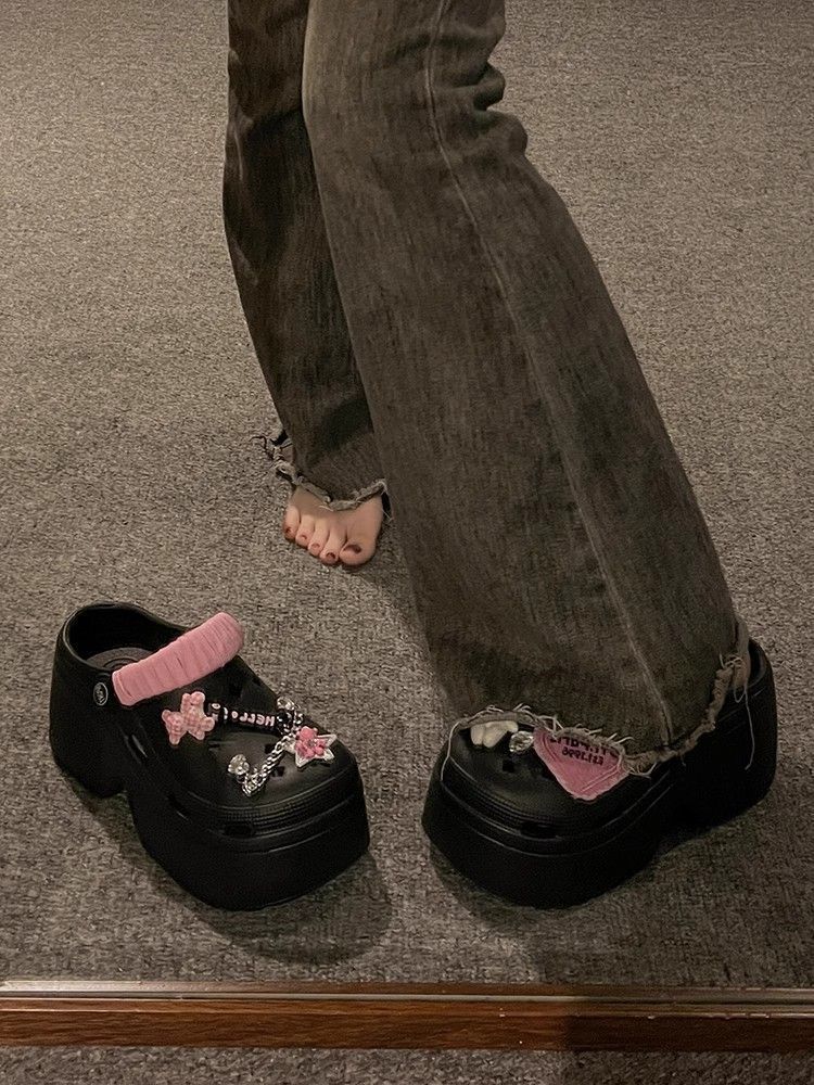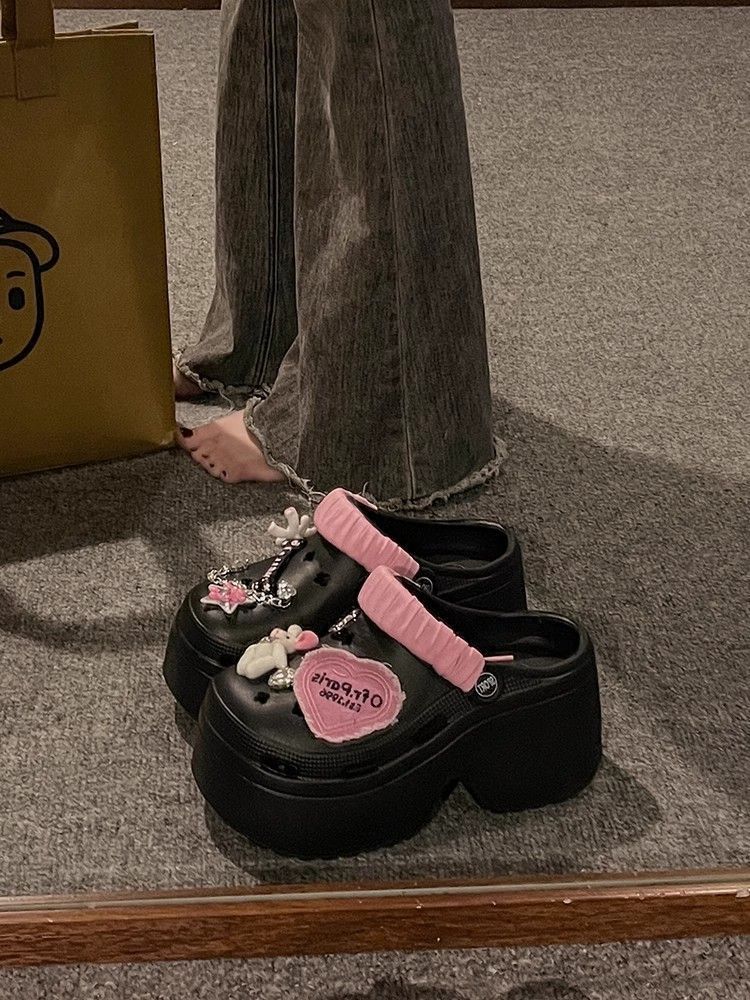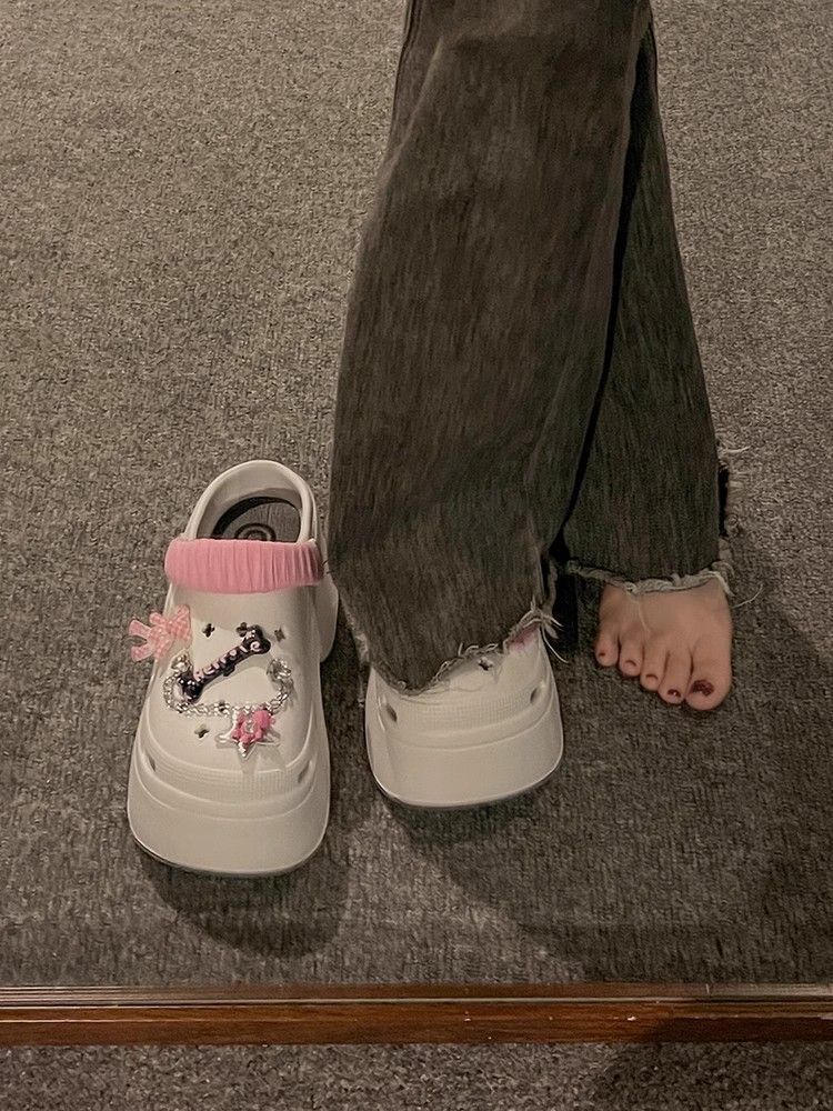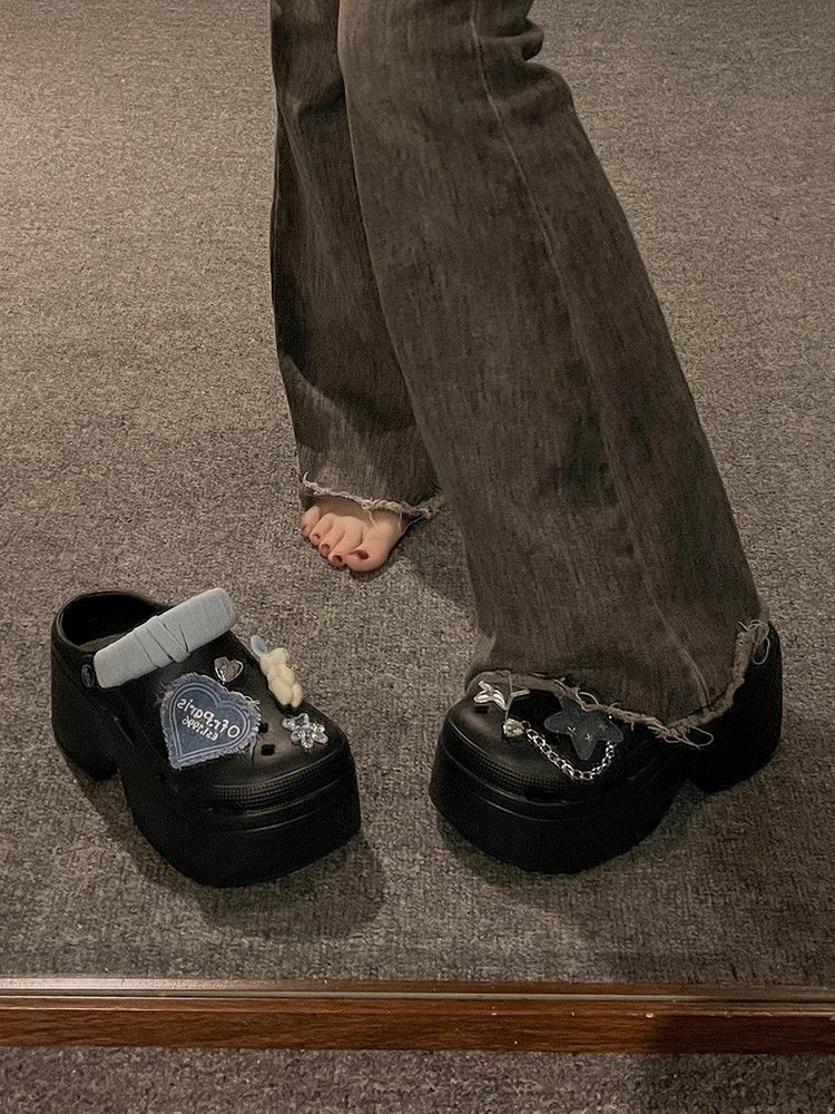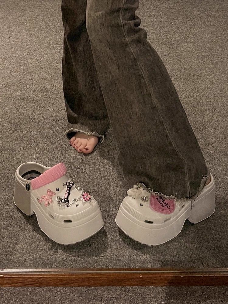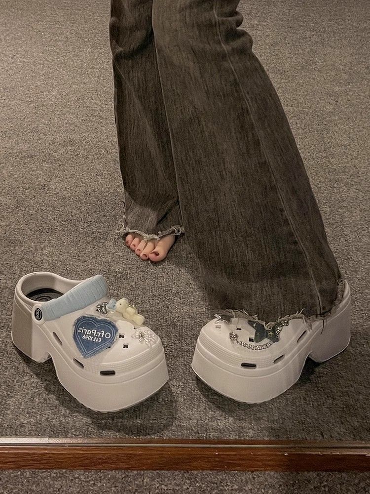 귀여운 만화 파란색과 흰색 체인 플랫폼 동굴 신발 여성 의상 2024 여름 새로운 스타일 슬립 온 투웨어 샌들스토어 가기