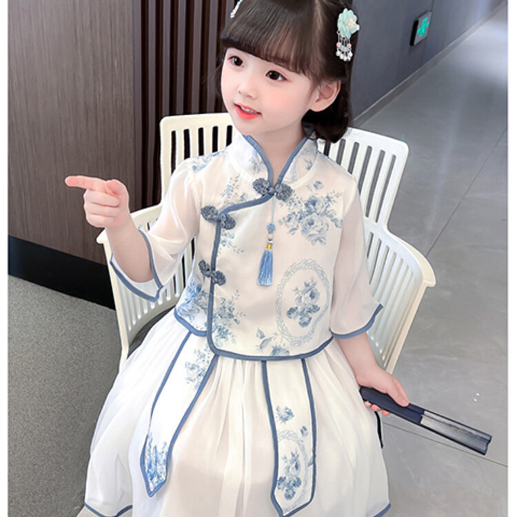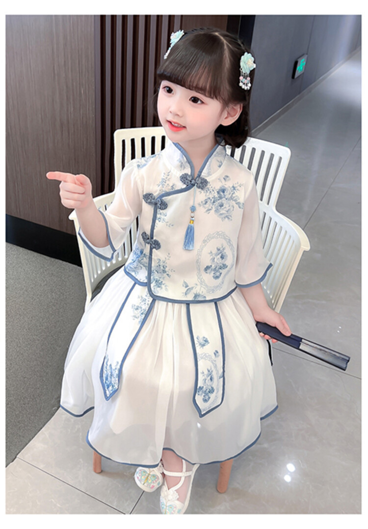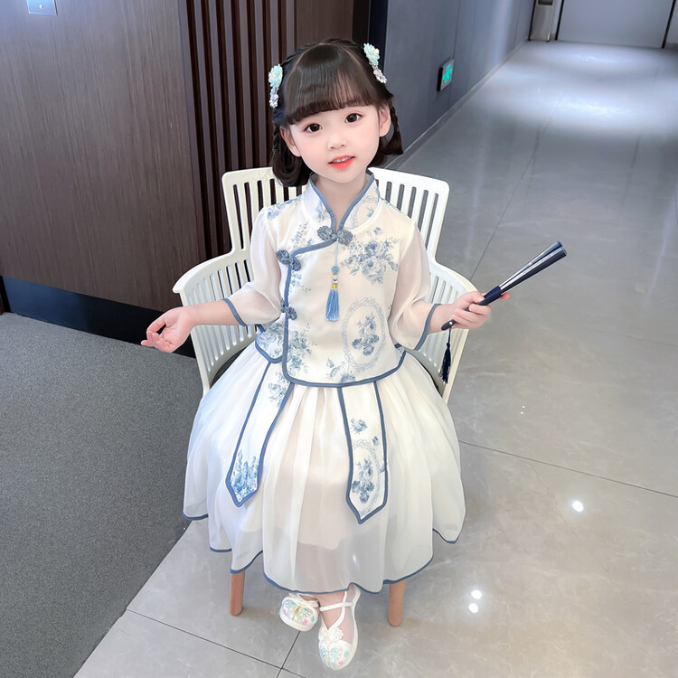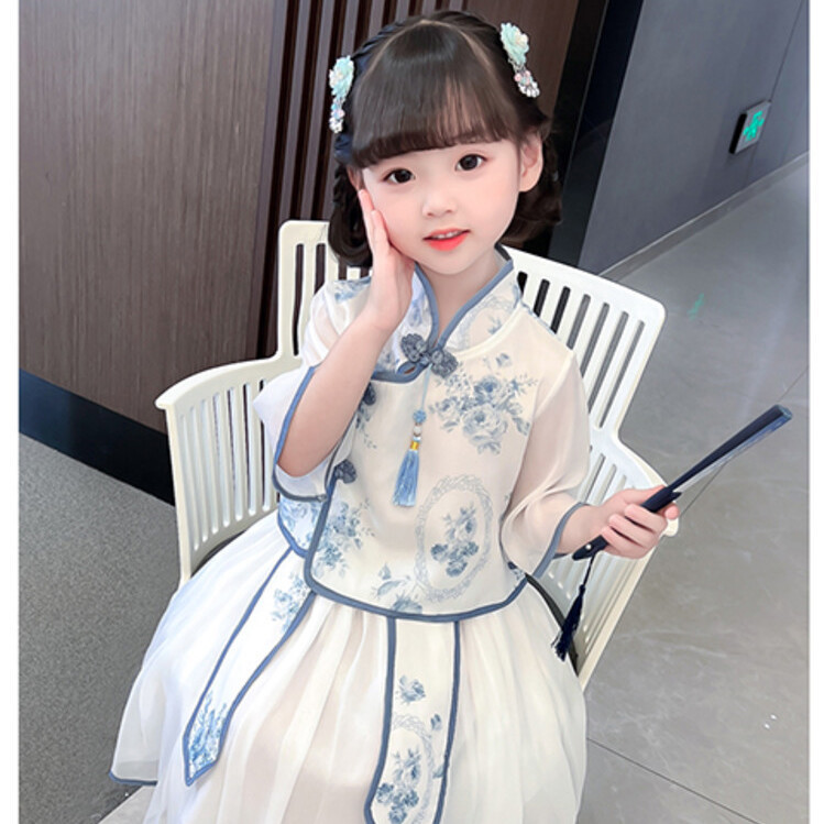 2025 여름 패션 어린이 소녀 중국 요소 어린이 의류 소녀 치마 아기 고대 의상 공주 원피스 트렌디