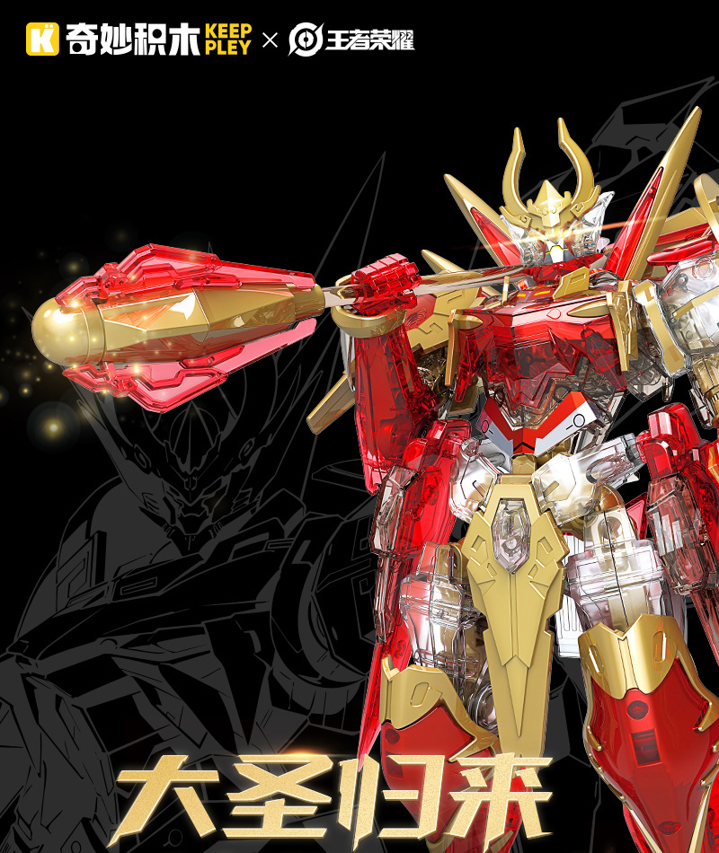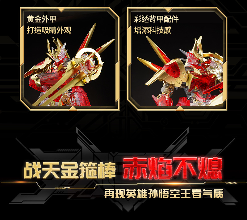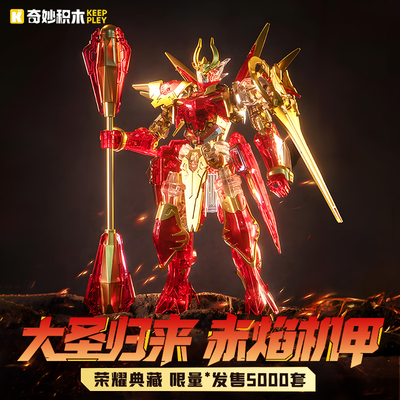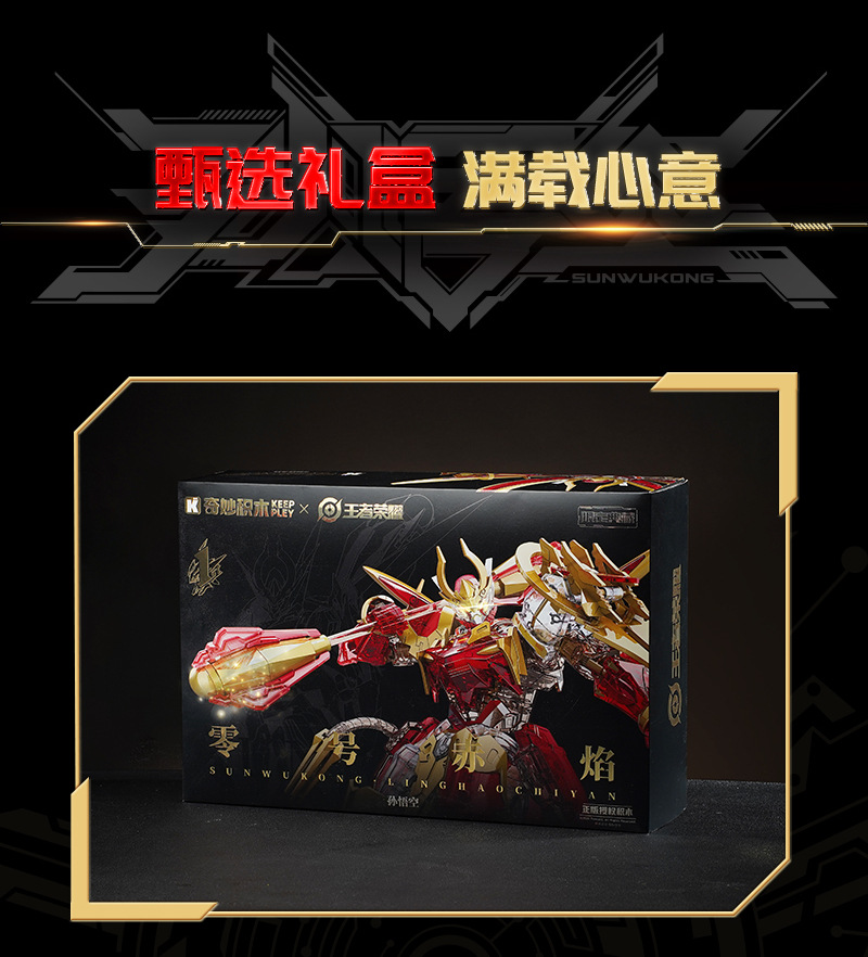 새로운 폭발 건물 블록 한정판 영광 원숭이 왕 0 번 붉은 불꽃 메카 조립 손으로 만든 모델 소년 선물스토어 가기