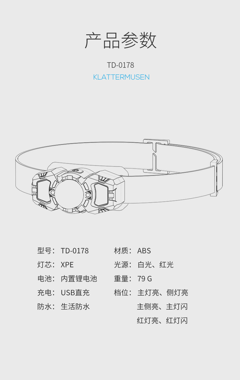 • TD-0177A 미니 휴대용 센서 헤드라이트 [내장 배터리 400MAH]