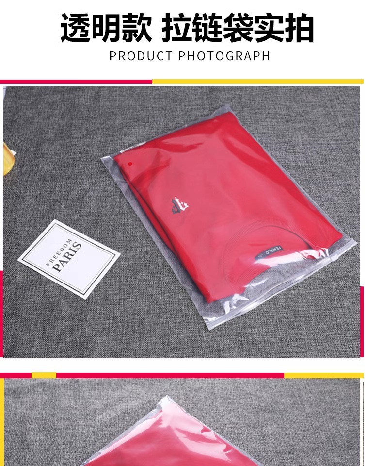 투명 의류 지퍼 가방 두꺼운 의류 포장 가방 자체 밀봉 비닐 봉투 사용자 정의 로고 인쇄