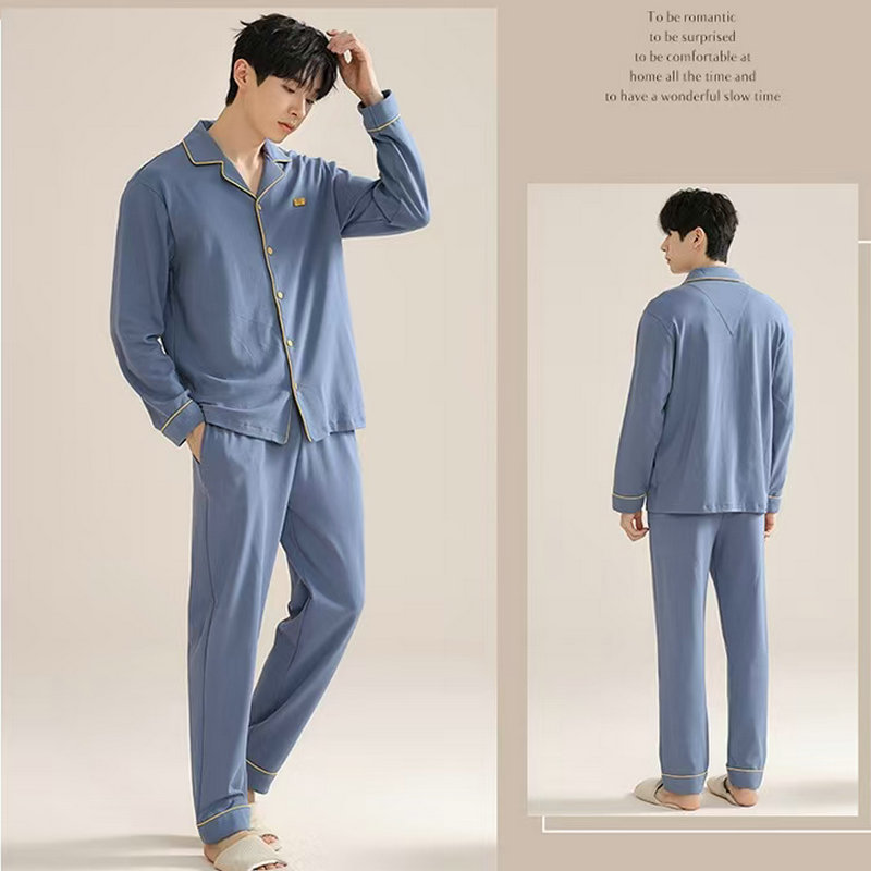 사계절 모두 사용할 수 있는 남성용 잠옷, 긴팔, 얇은, 플러스 사이즈, 루즈한 홈웨어, 봄, 가을 투피스 슈트, 편안하고 통기성이 좋습니다.