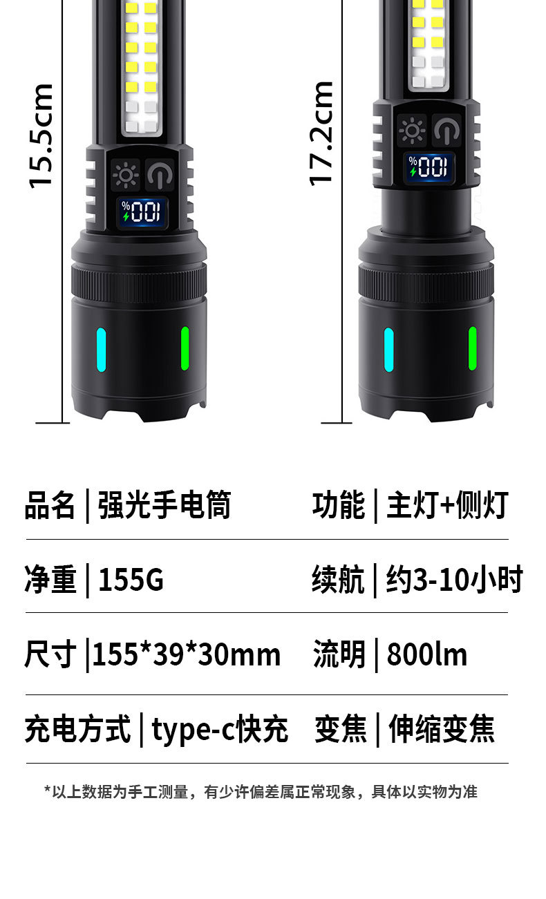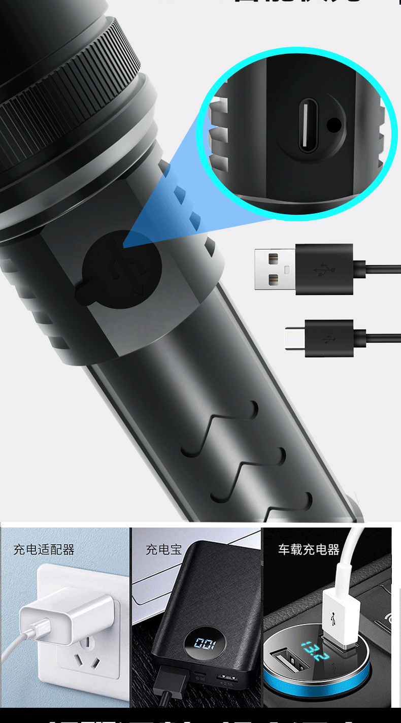 새로운 손전등 충전식 휴대용 긴 수명 손전등 슈퍼 밝은 야외 다기능 비상 작업 조명스토어 가기