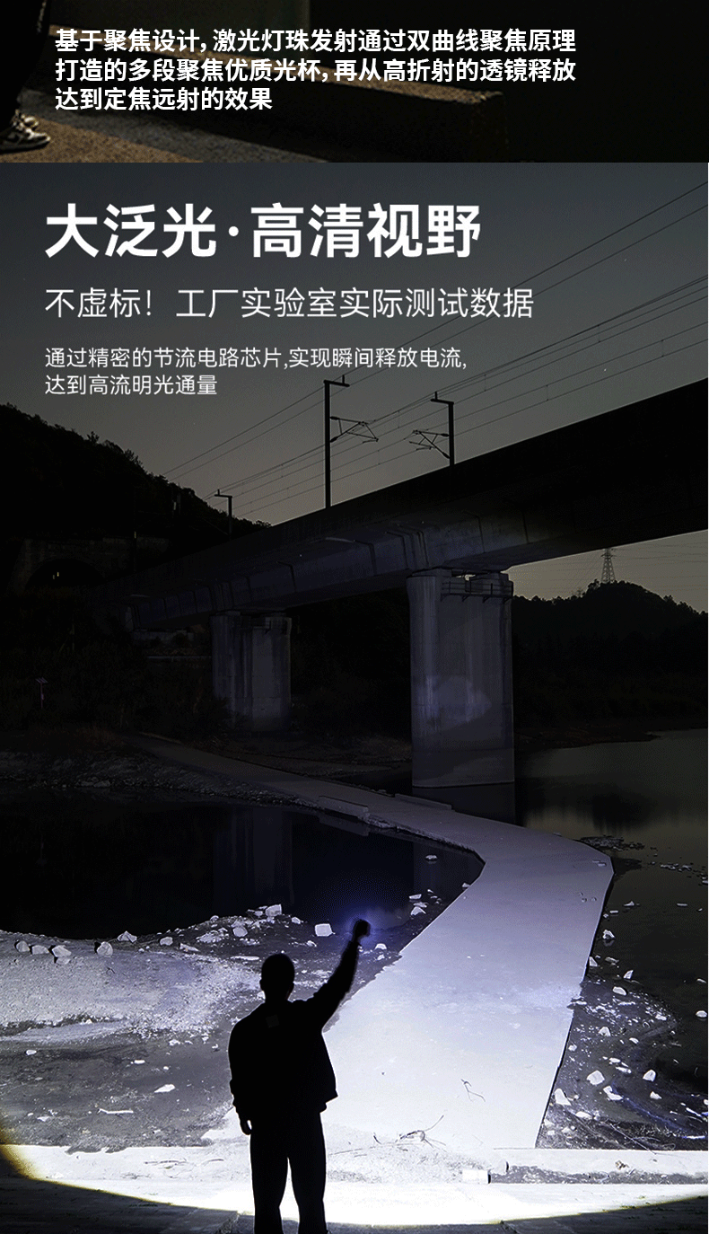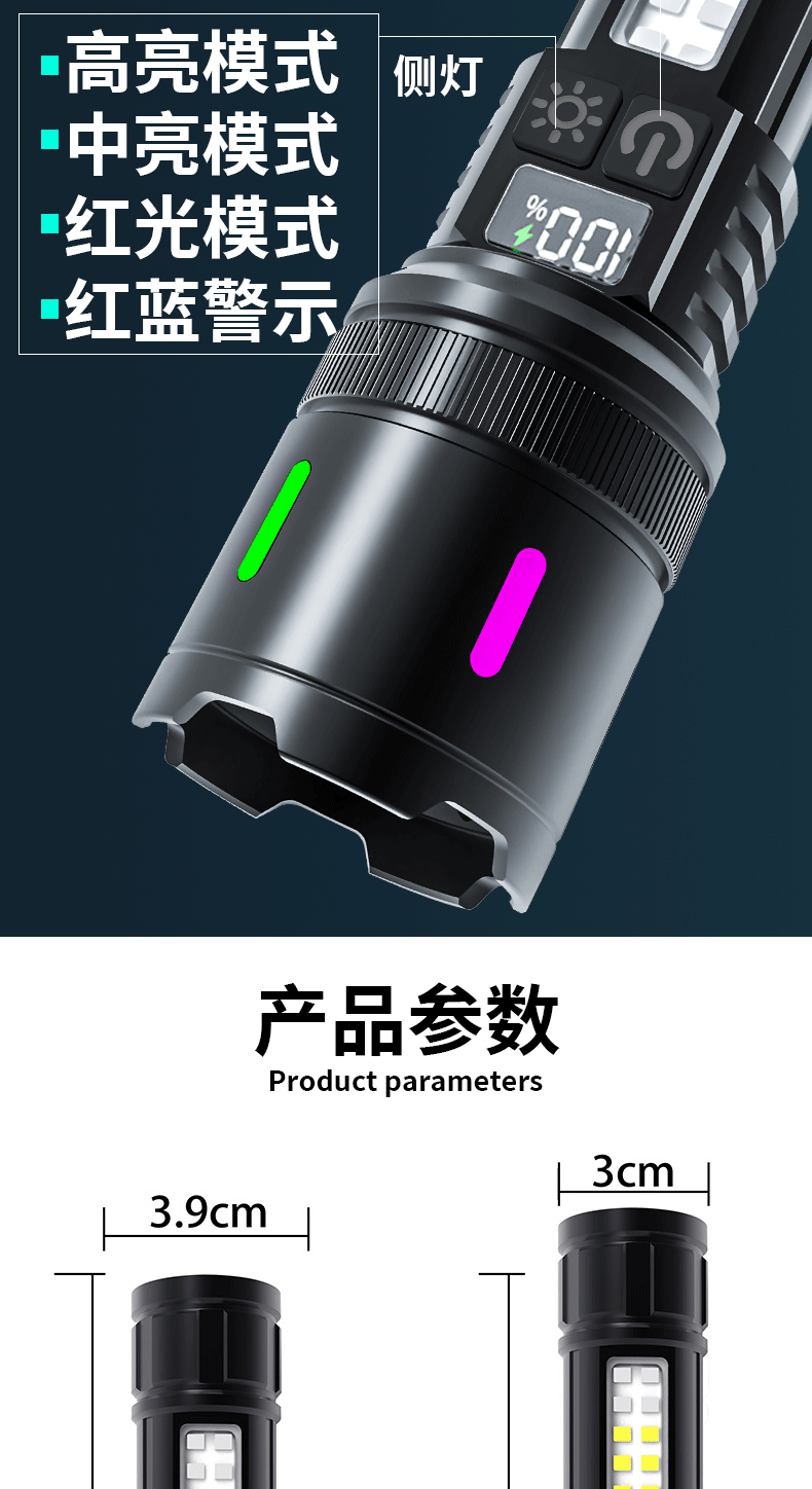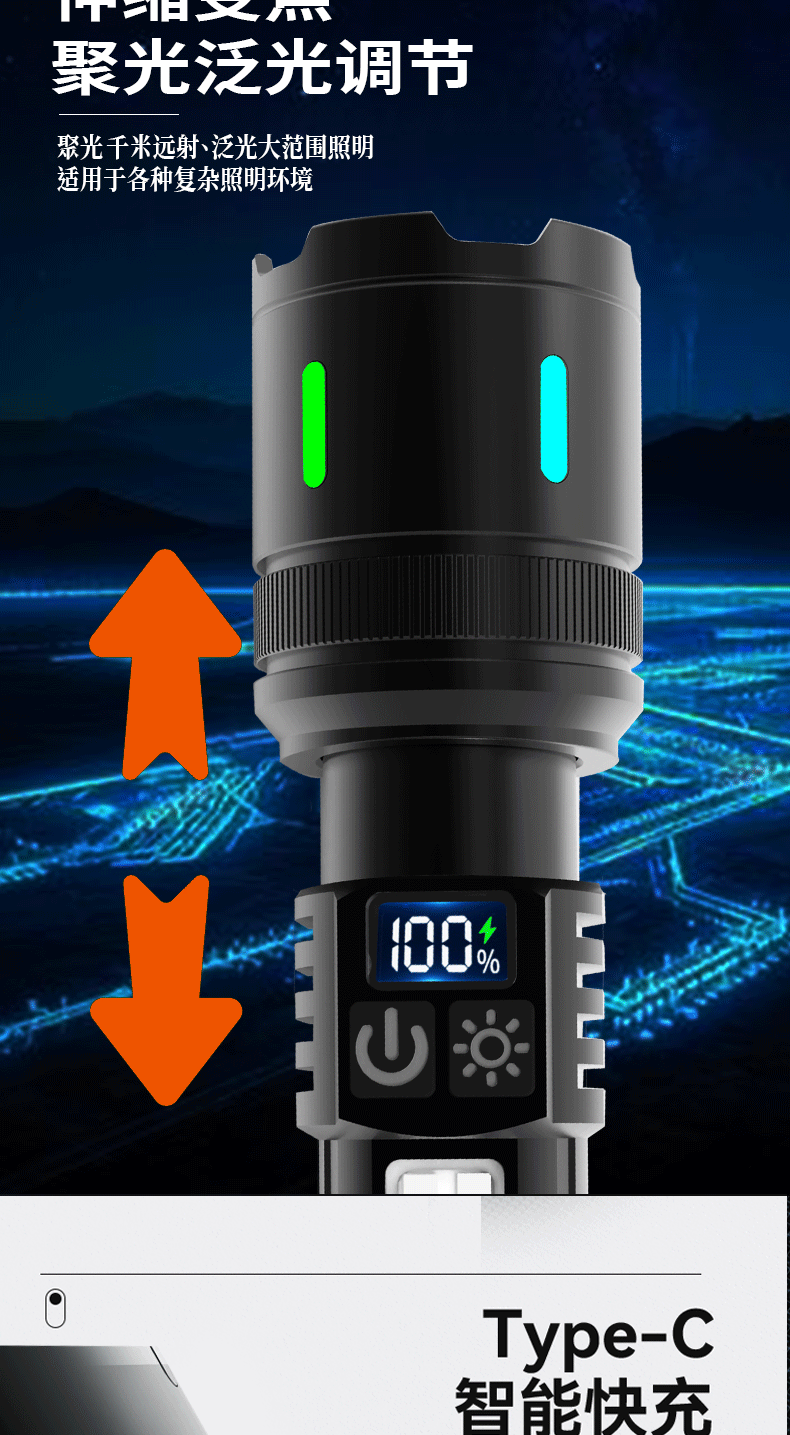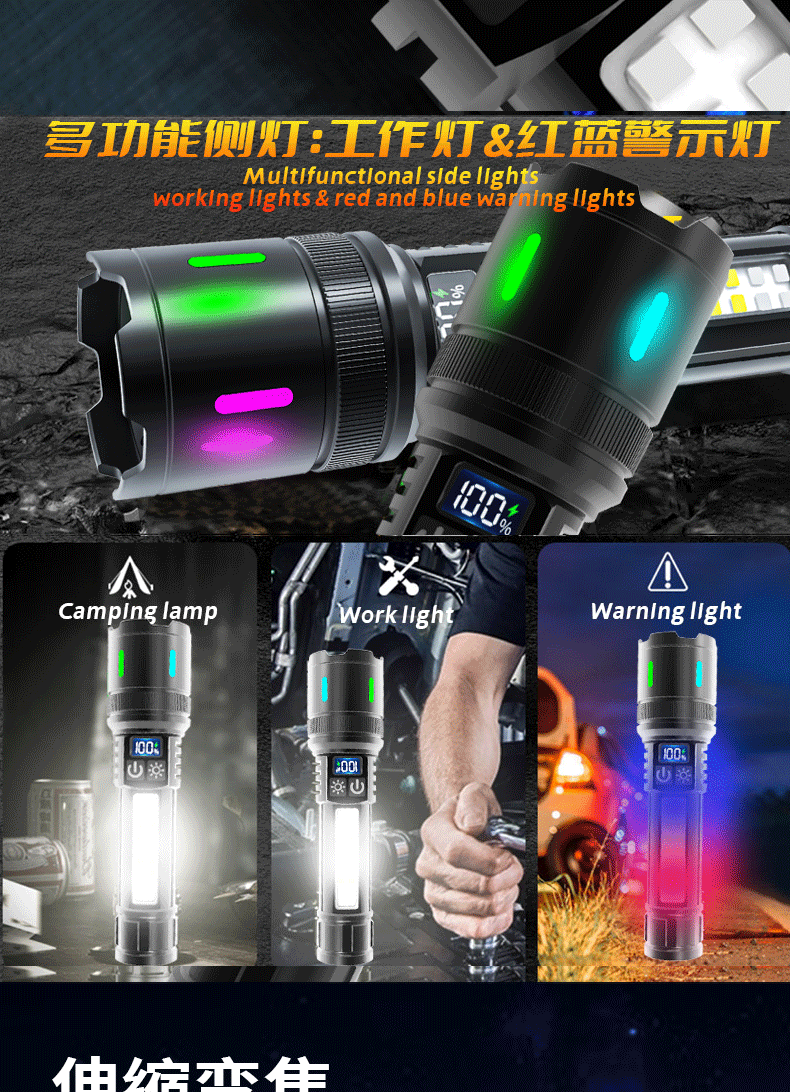 새로운 손전등 충전식 휴대용 긴 수명 손전등 슈퍼 밝은 야외 다기능 비상 작업 조명