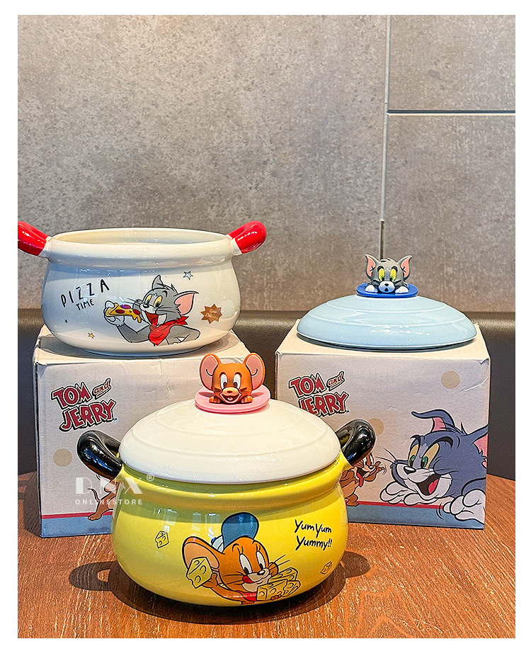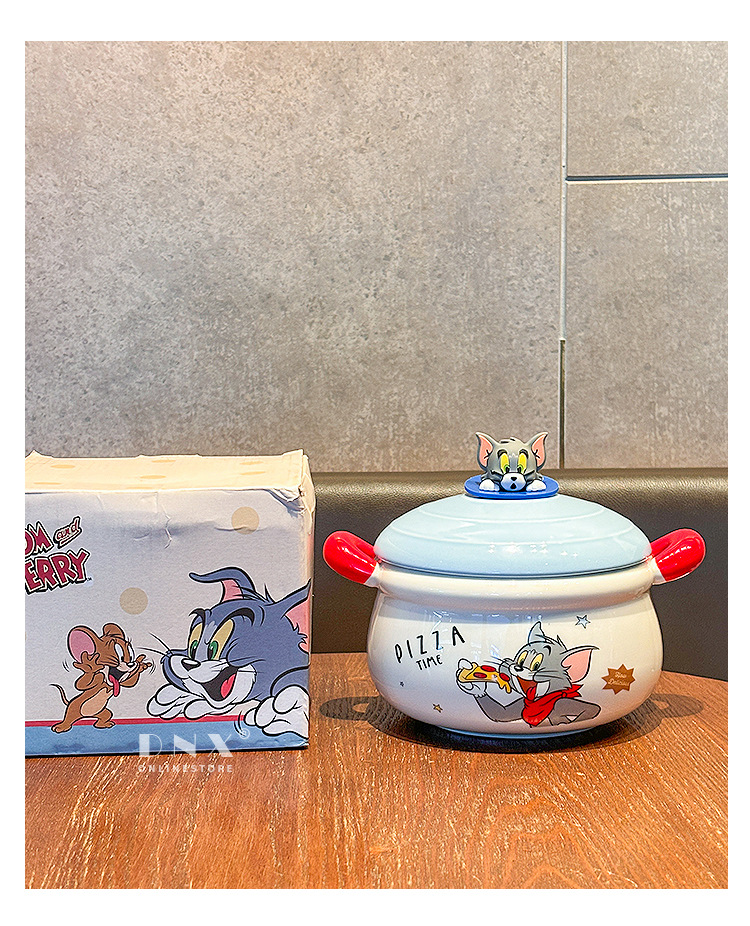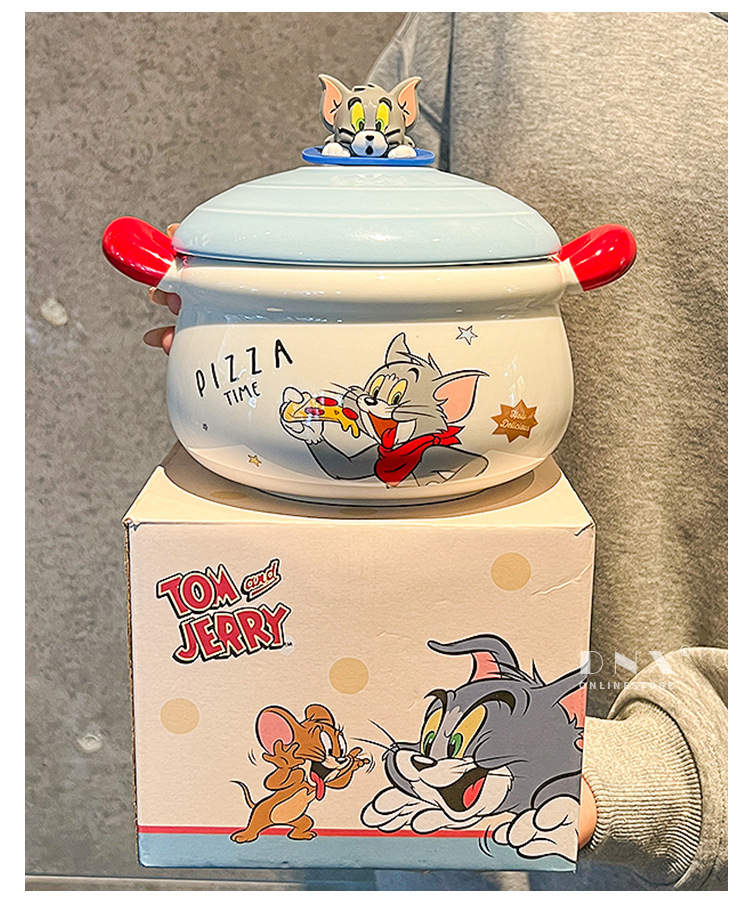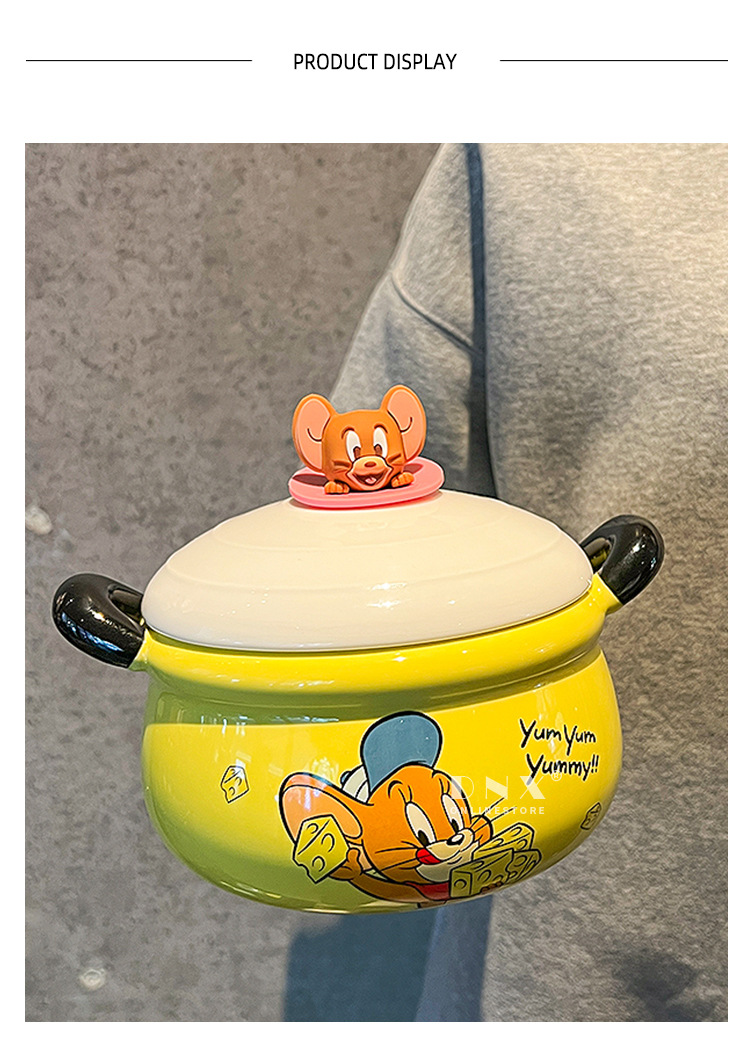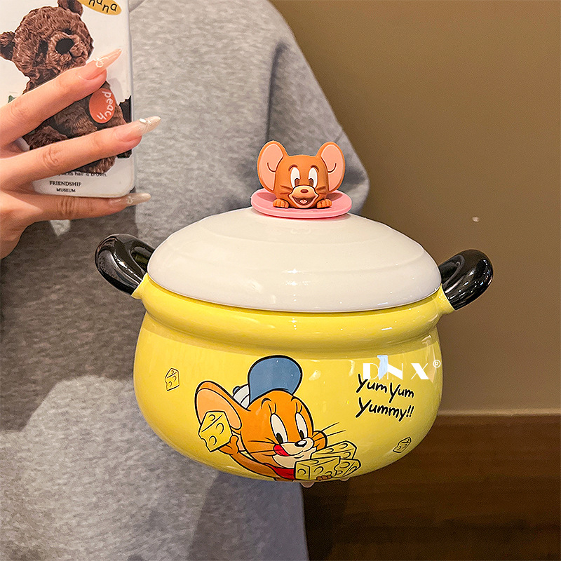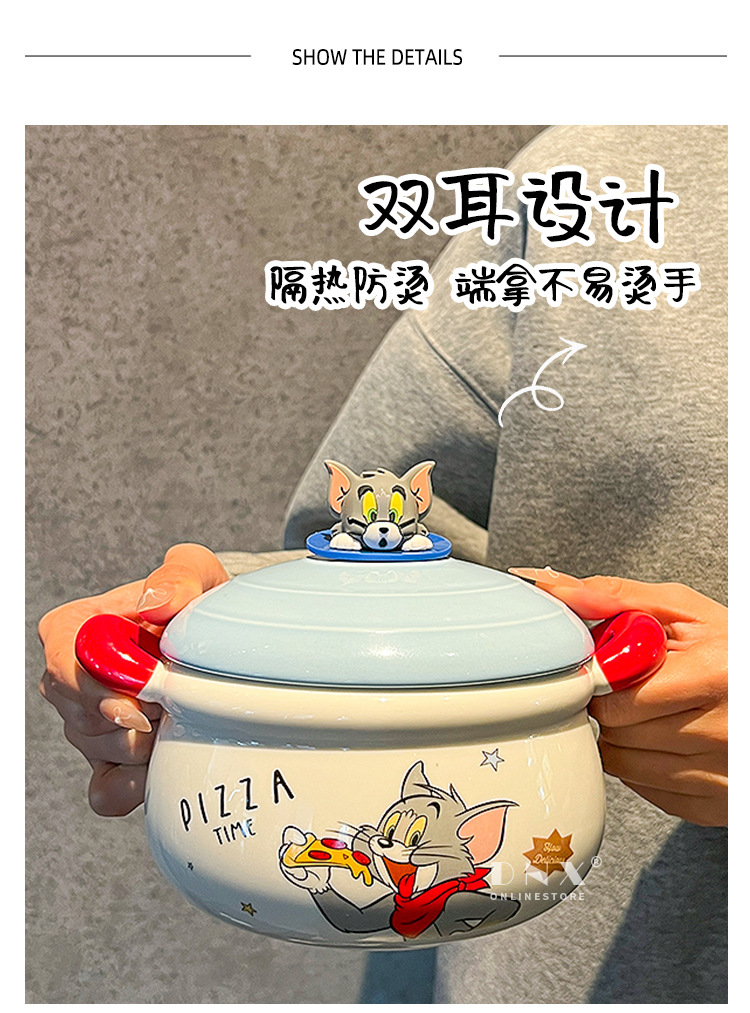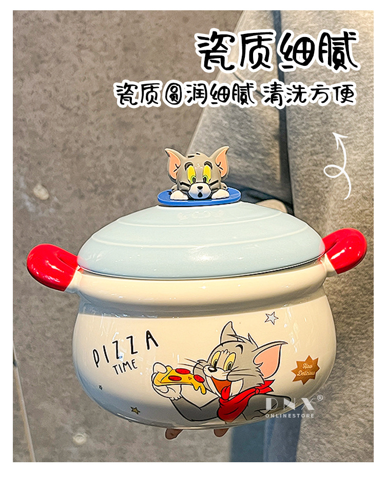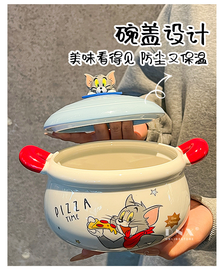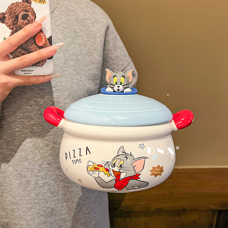 고양이와 마우스 바이나럴 인스턴트 국수 그릇 뚜껑이 달린 기숙사 학생 큰 세라믹 수프 그릇 집 여성 생일 선물 귀여운스토어 가기