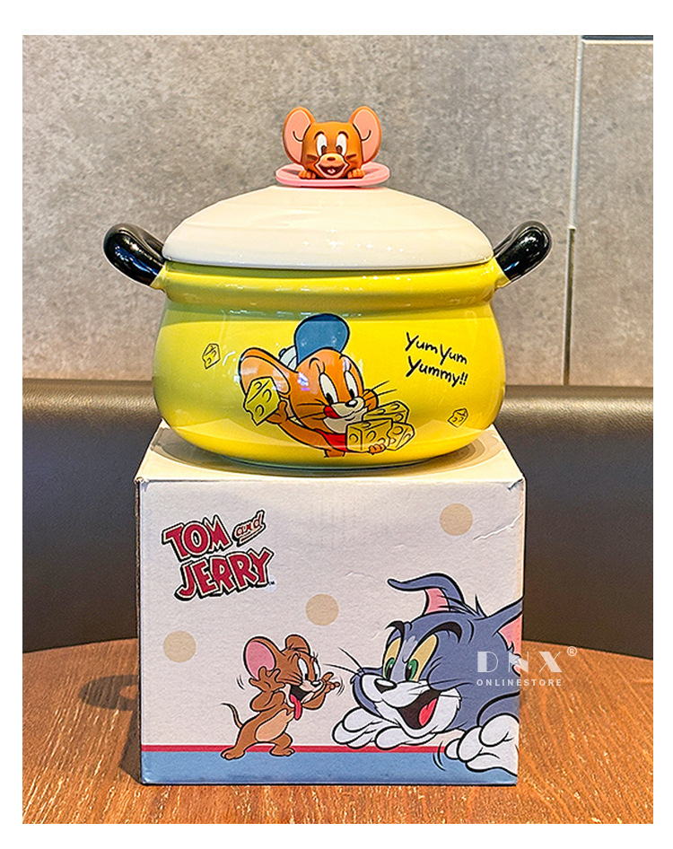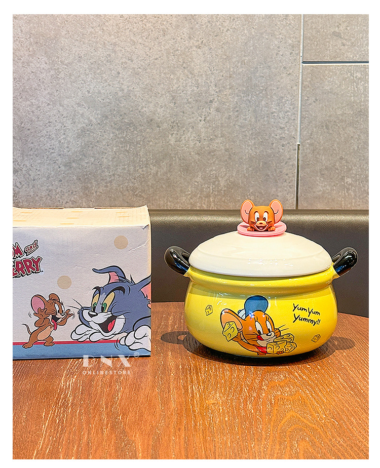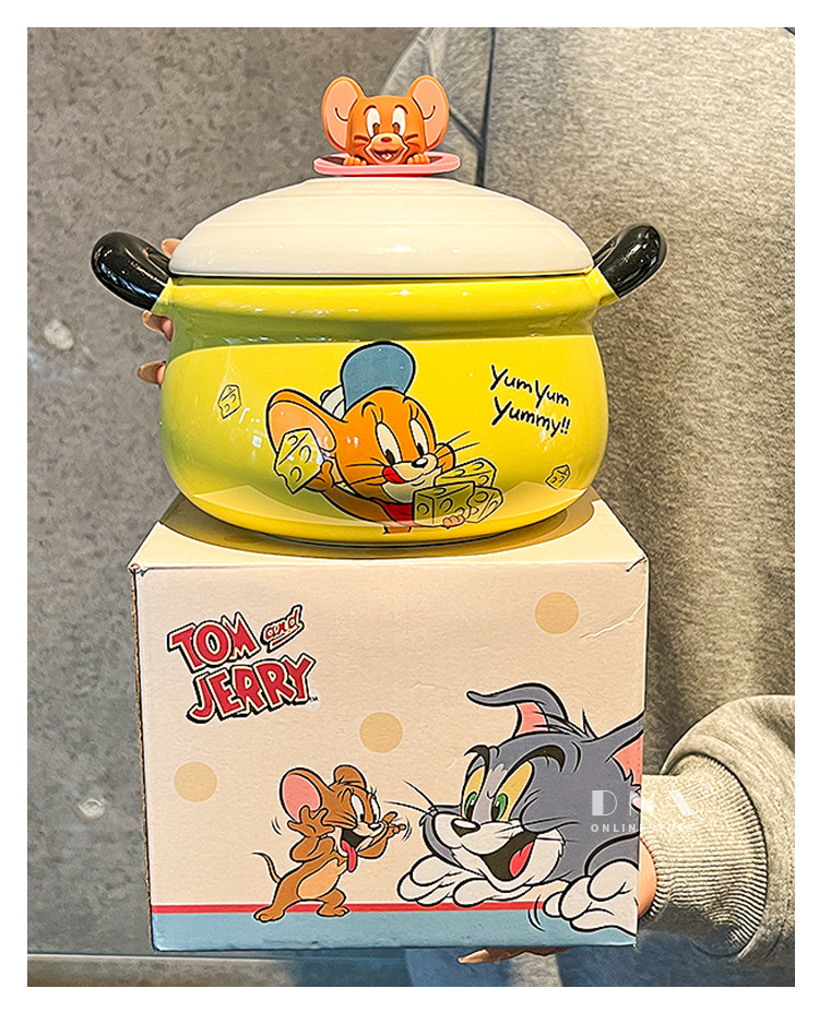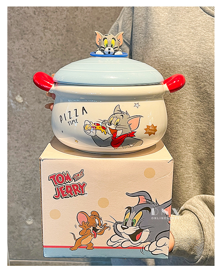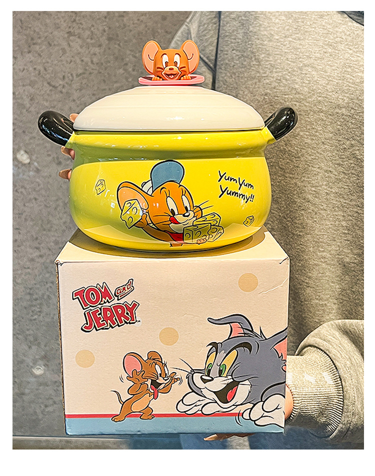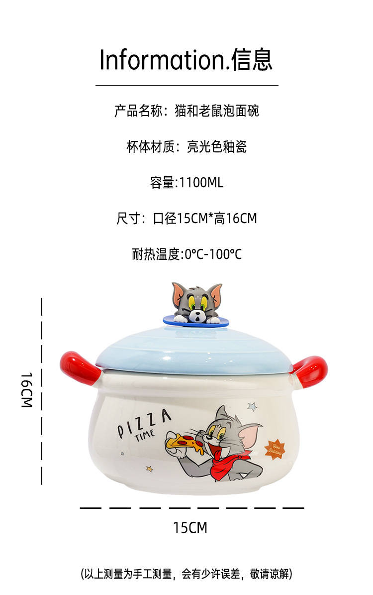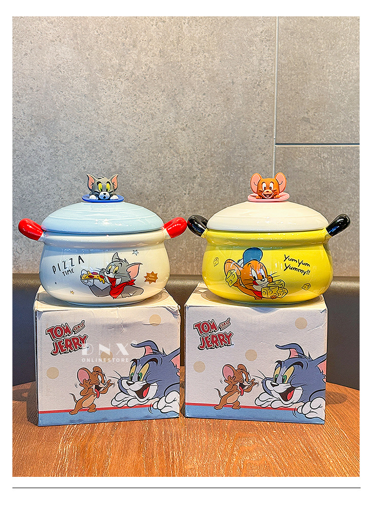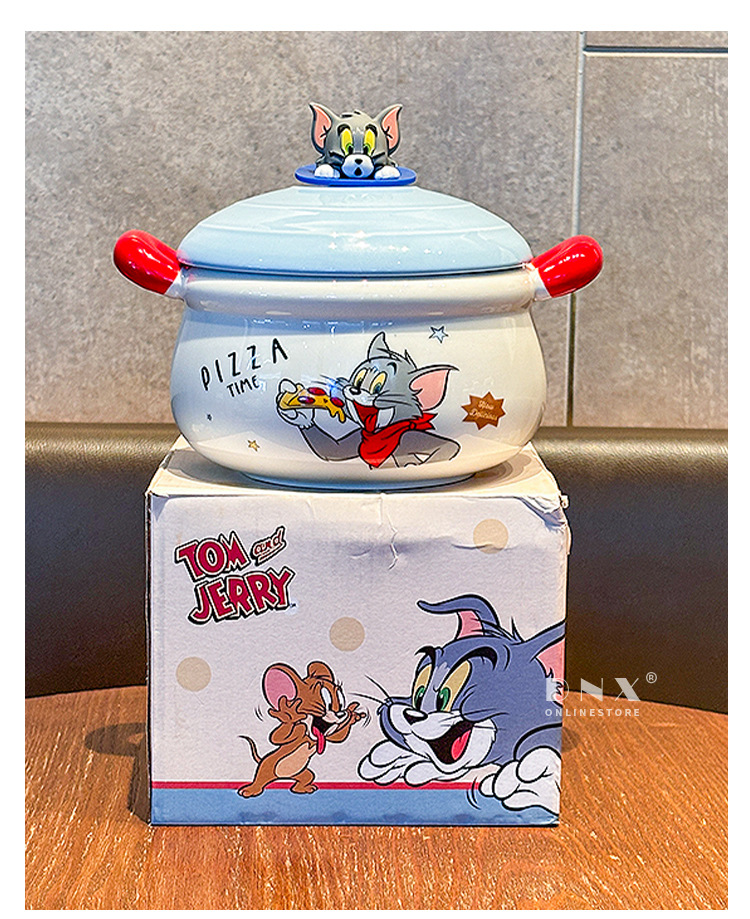 고양이와 마우스 바이나럴 인스턴트 국수 그릇 뚜껑이 달린 기숙사 학생 큰 세라믹 수프 그릇 집 여성 생일 선물 귀여운스토어 가기