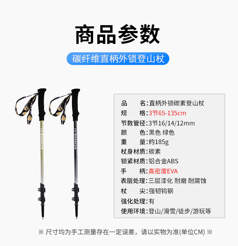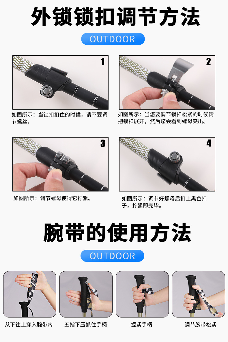 공장 트레킹 폴 외부 잠금 탄소 초경량 텔레스코픽 워킹 폴 탄소 섬유 전문 하이킹 접이식 야외 용품