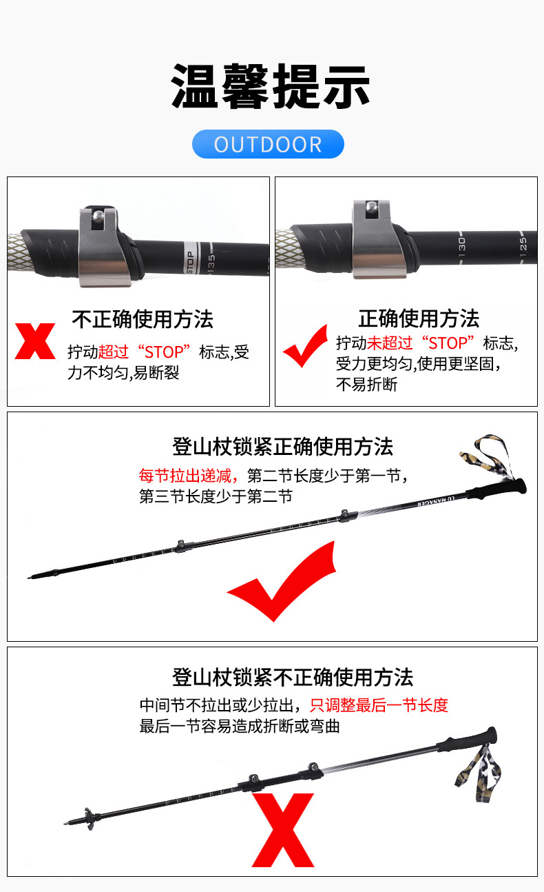 공장 트레킹 폴 외부 잠금 탄소 초경량 텔레스코픽 워킹 폴 탄소 섬유 전문 하이킹 접이식 야외 용품스토어 가기