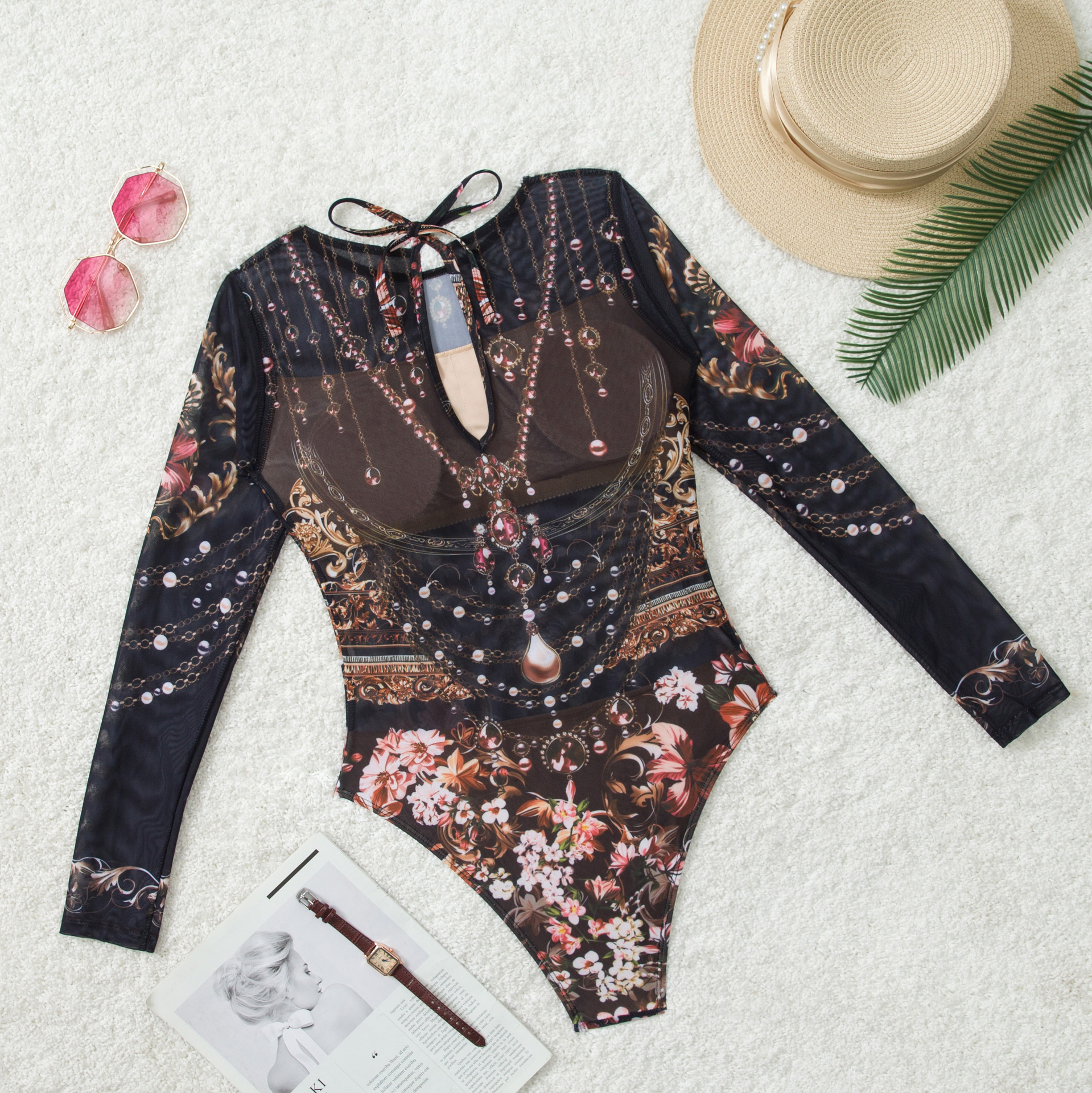 러시아 2025 섹시한 메쉬 비키니 포지셔닝 프린트 수영복 Купальник