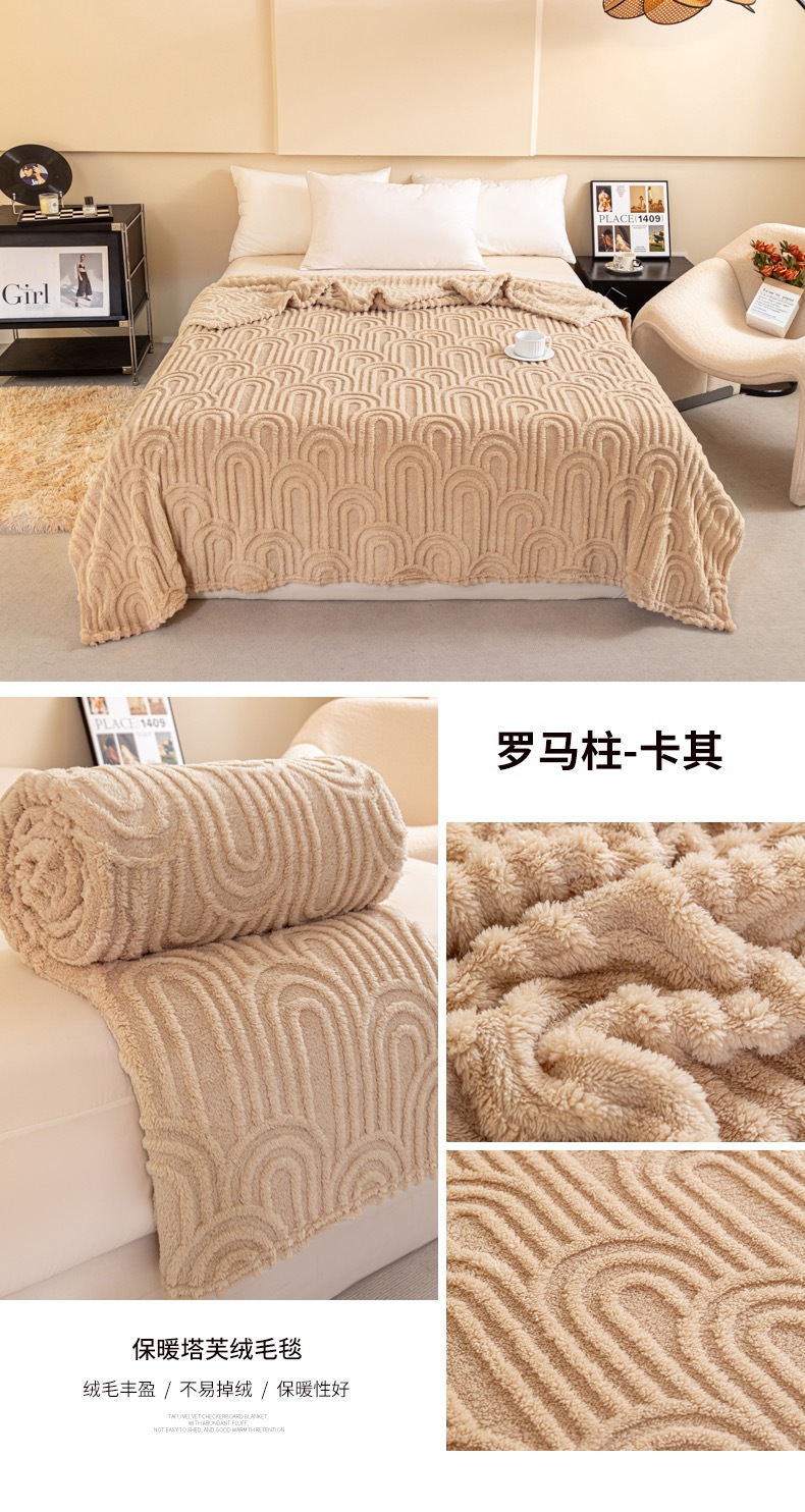 2025 새로운 국경 전자 상거래 타워 양털 솔리드 컬러 로마 칼럼 양면 양털 자카드 다기능 담요 낮잠 담요