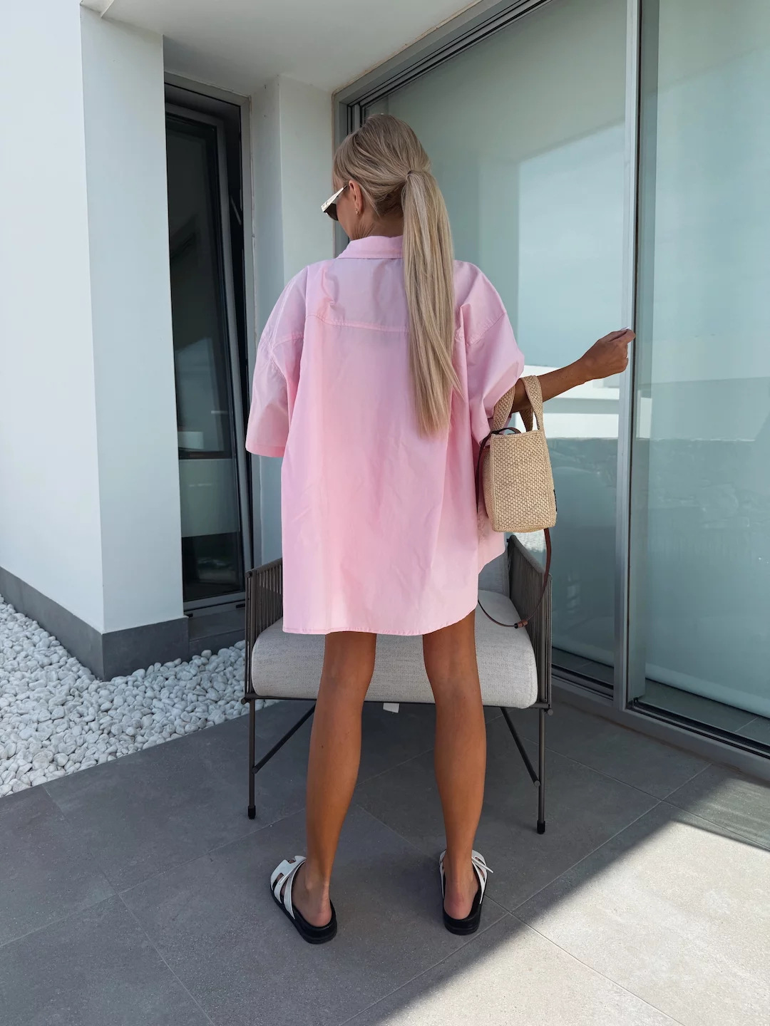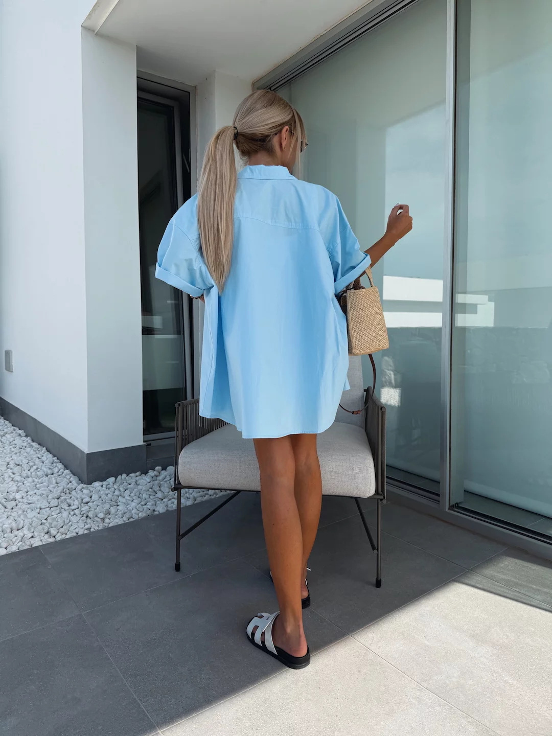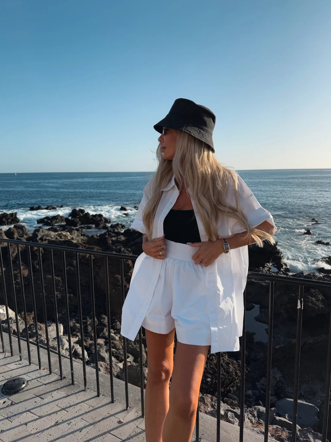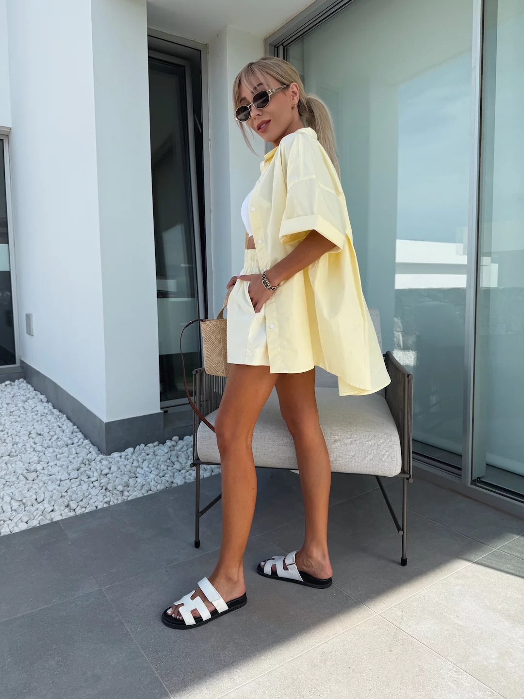 유럽과 미국의 새로운 2025 봄과 여름 캐주얼 여성 세트 단색 반팔 셔츠 투피스 세트