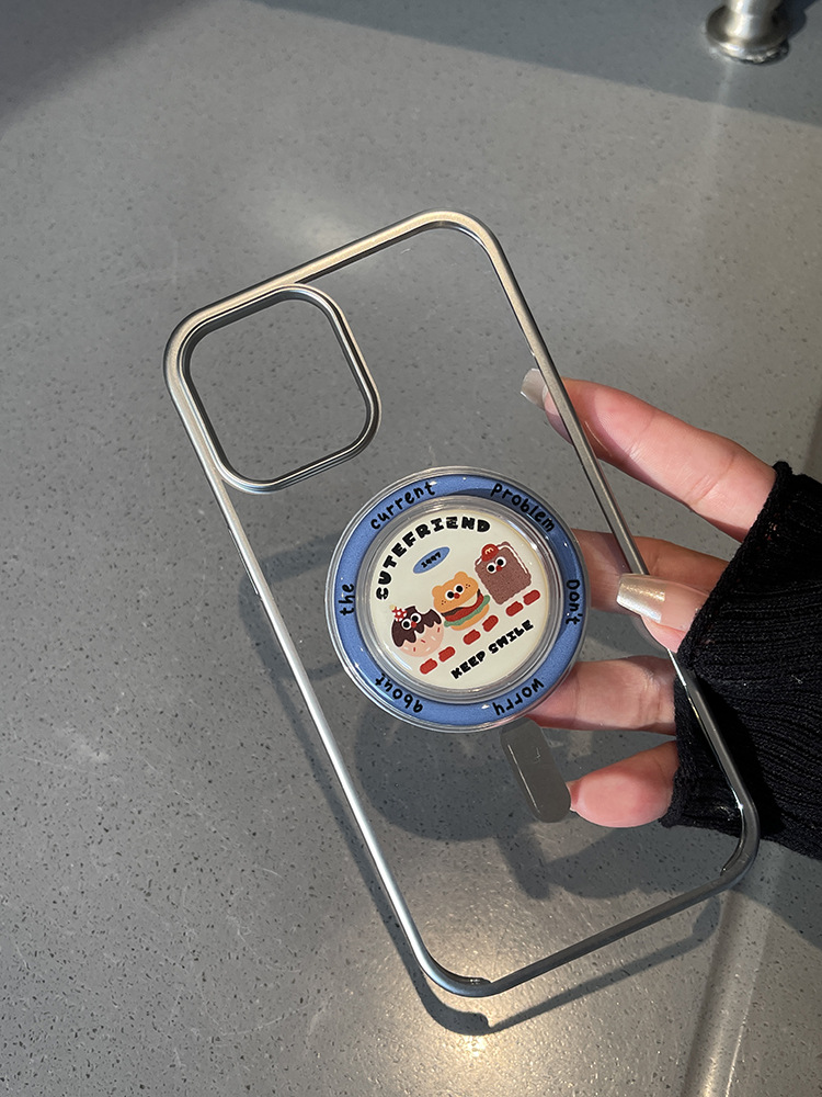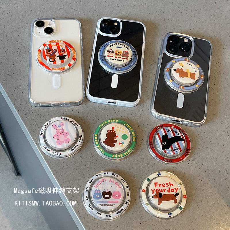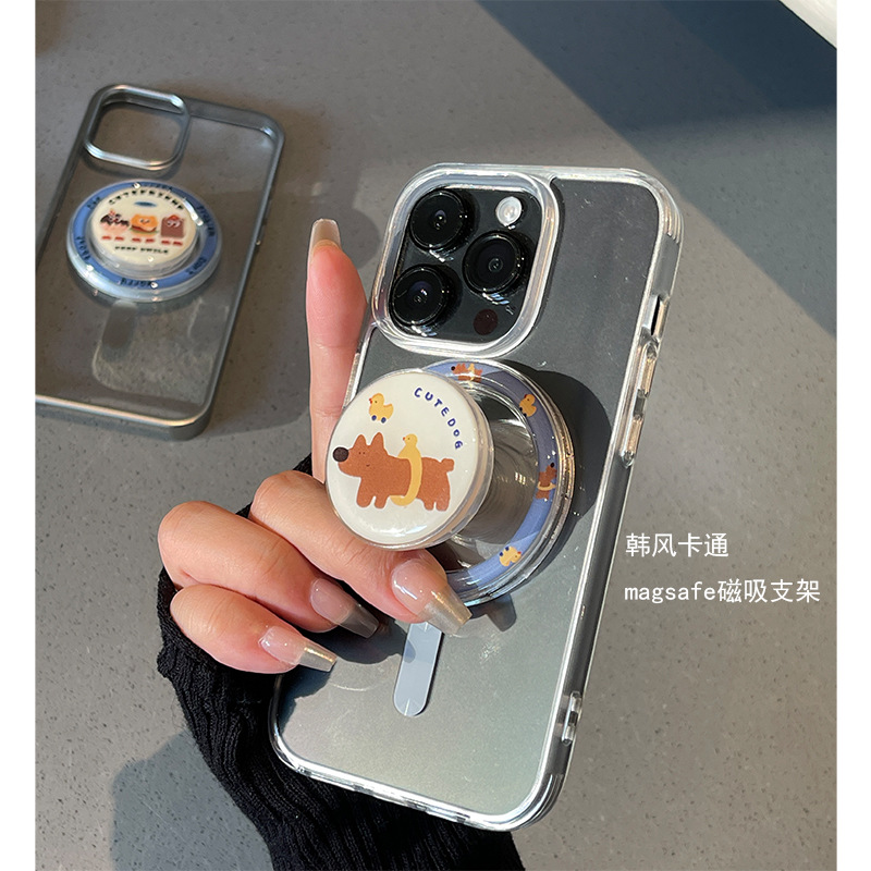 한국판 귀여운 만화 캐릭터 마그세이프 자석 휴대폰 케이스 스탠드, 신축성 있는 에어백 셀카용 휴대용 케이스스토어 가기