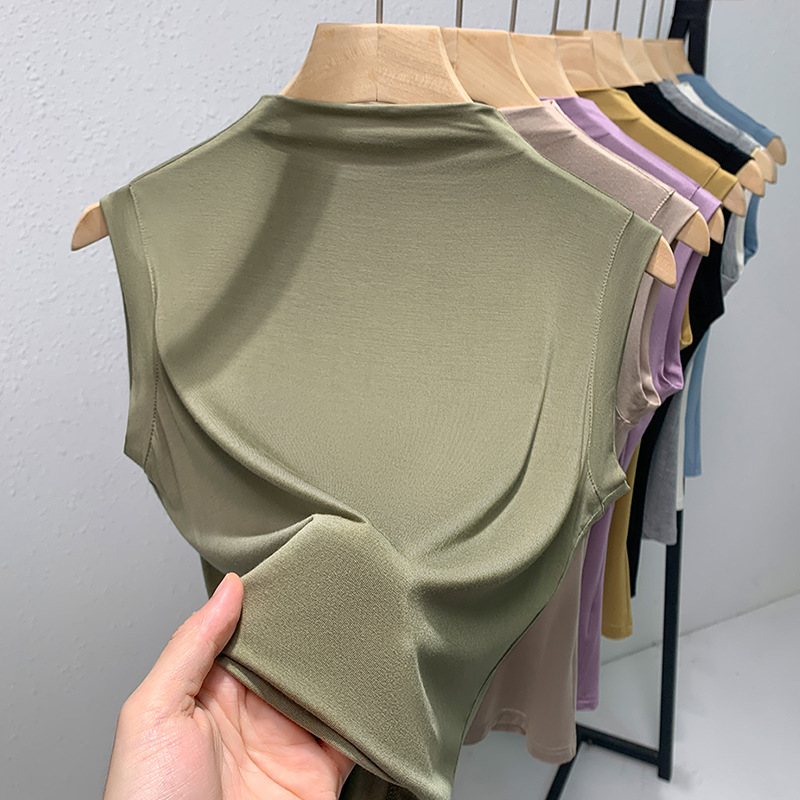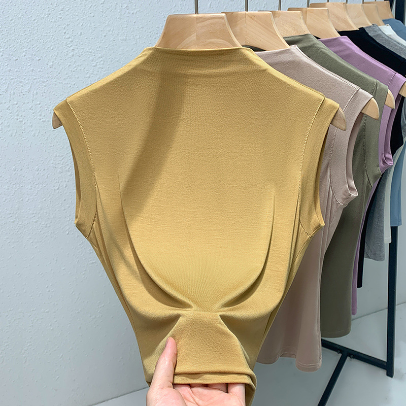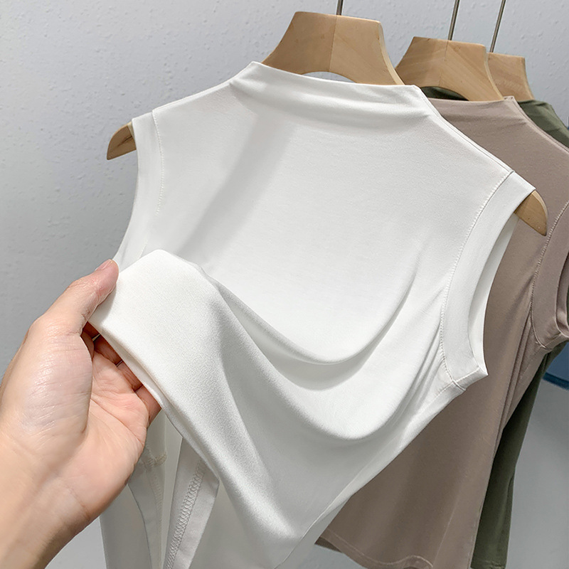 모달 캐미솔 여성의 2025 년 봄 새로운 세미 하이 칼라 얇은 기본 셔츠 기질 양복 조끼 도매스토어 가기
