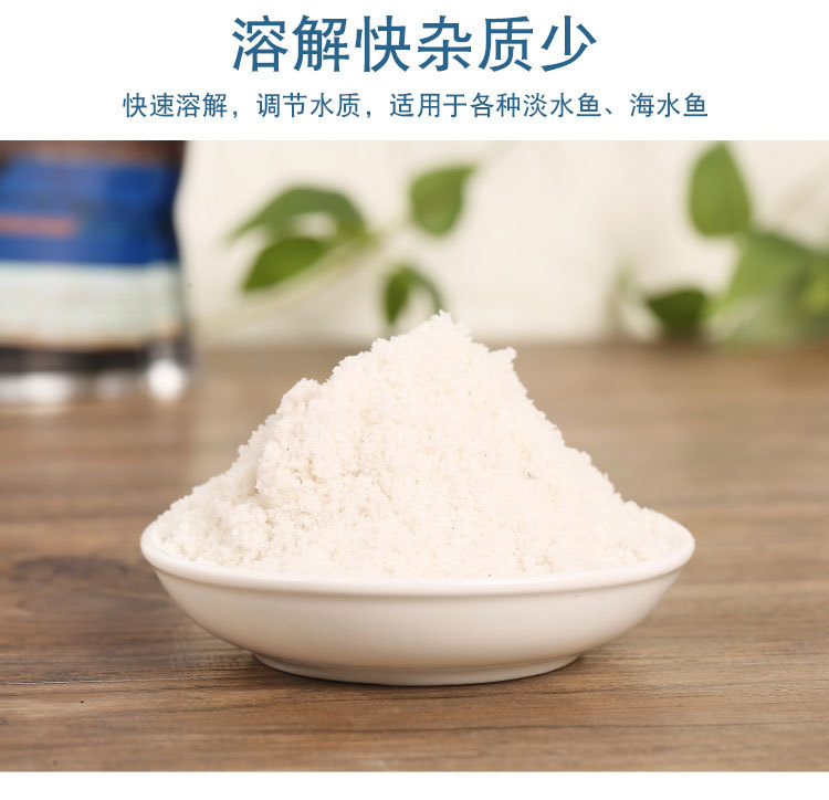 另外,本品还可以用于观赏鱼的消毒以及病菌的有效预防(白点,霉菌,寄生虫),在浸泡养鱼器械时,加入专用盐能有效的杀灭多种病菌原体。在新鱼到达转水时处理使用。里边含有多种微量元素用于水族可以预防鱼病,通过干预渗透压减低鱼只紧迫配合高温可使鱼只快速适应新水环境以及消炎的作用。本产品未经过任何提纯,属天然海水提炼物。