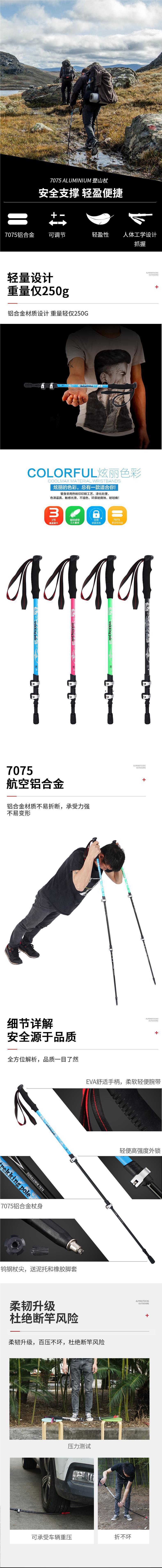 야외 고급 잠금 등반 스틱 7075 알루미늄 합금 3 섹션 초경량 휴대용 망원경 하이킹 스틱 산 목발스토어 가기