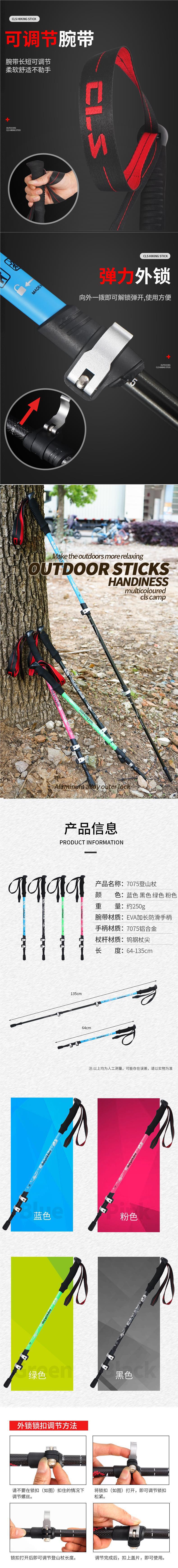 야외 고급 잠금 등반 스틱 7075 알루미늄 합금 3 섹션 초경량 휴대용 망원경 하이킹 스틱 산 목발