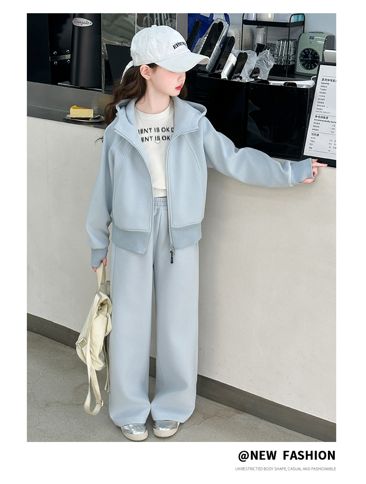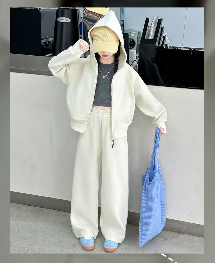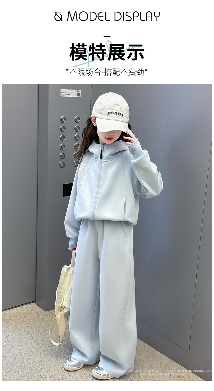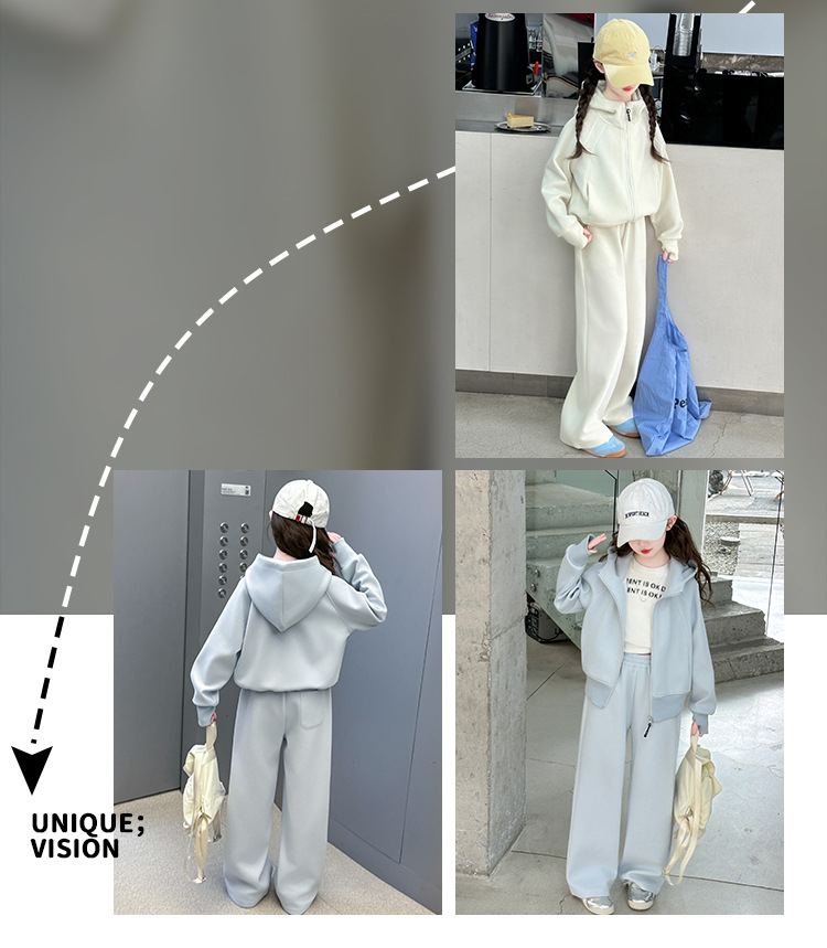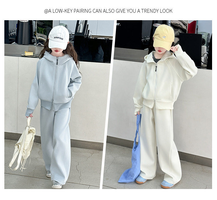 걸스 봄웨어 세트 2025 새로운 한국 레저 스포츠웨어 큰 어린이 서양식 스트리트 스웨트 셔츠 투피스 패션스토어 가기