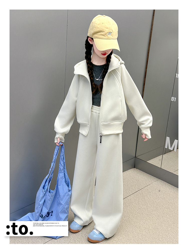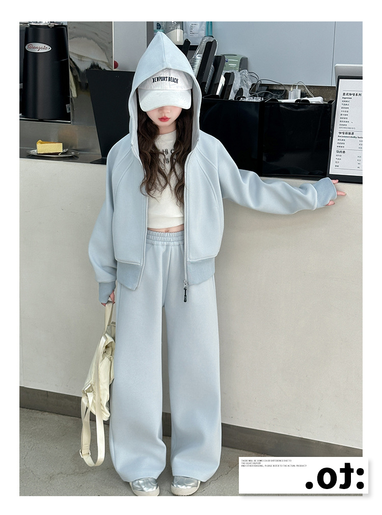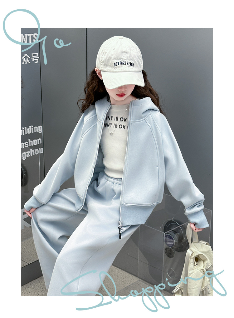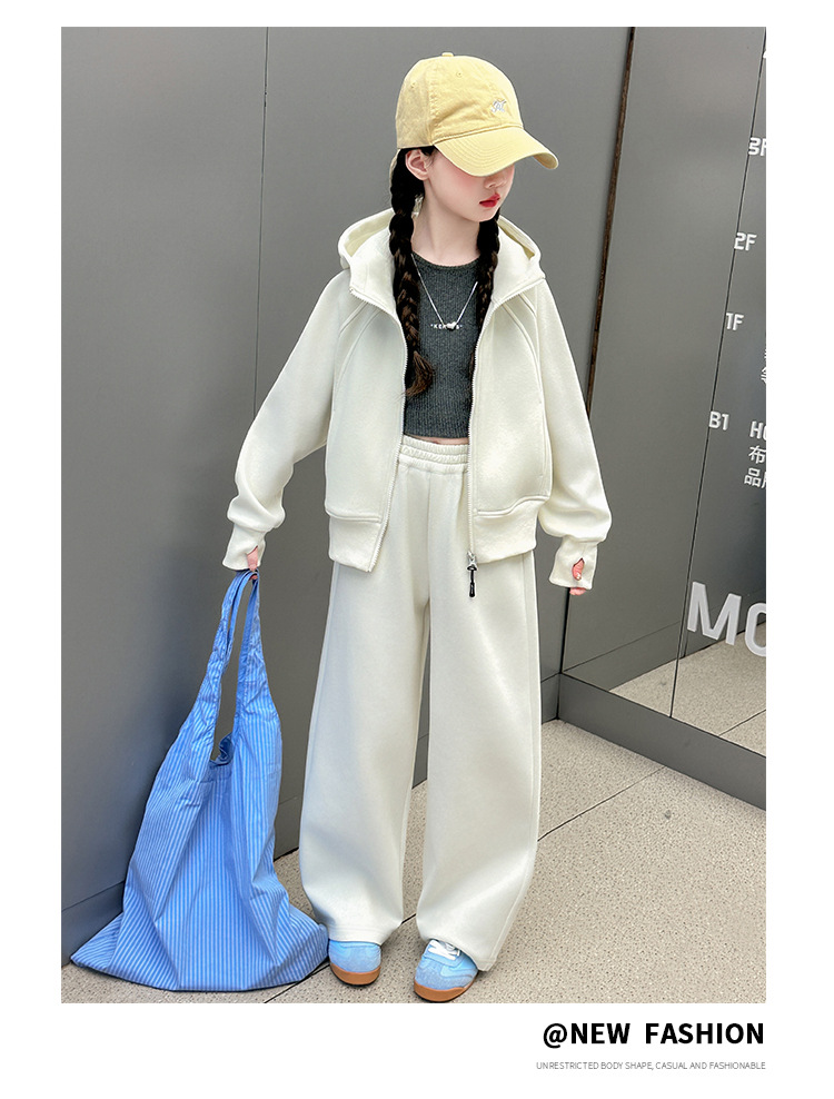 걸스 봄웨어 세트 2025 새로운 한국 레저 스포츠웨어 큰 어린이 서양식 스트리트 스웨트 셔츠 투피스 패션스토어 가기