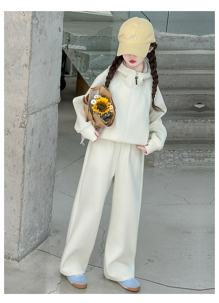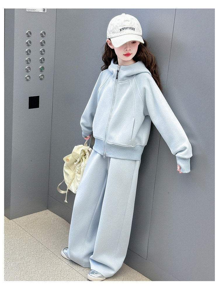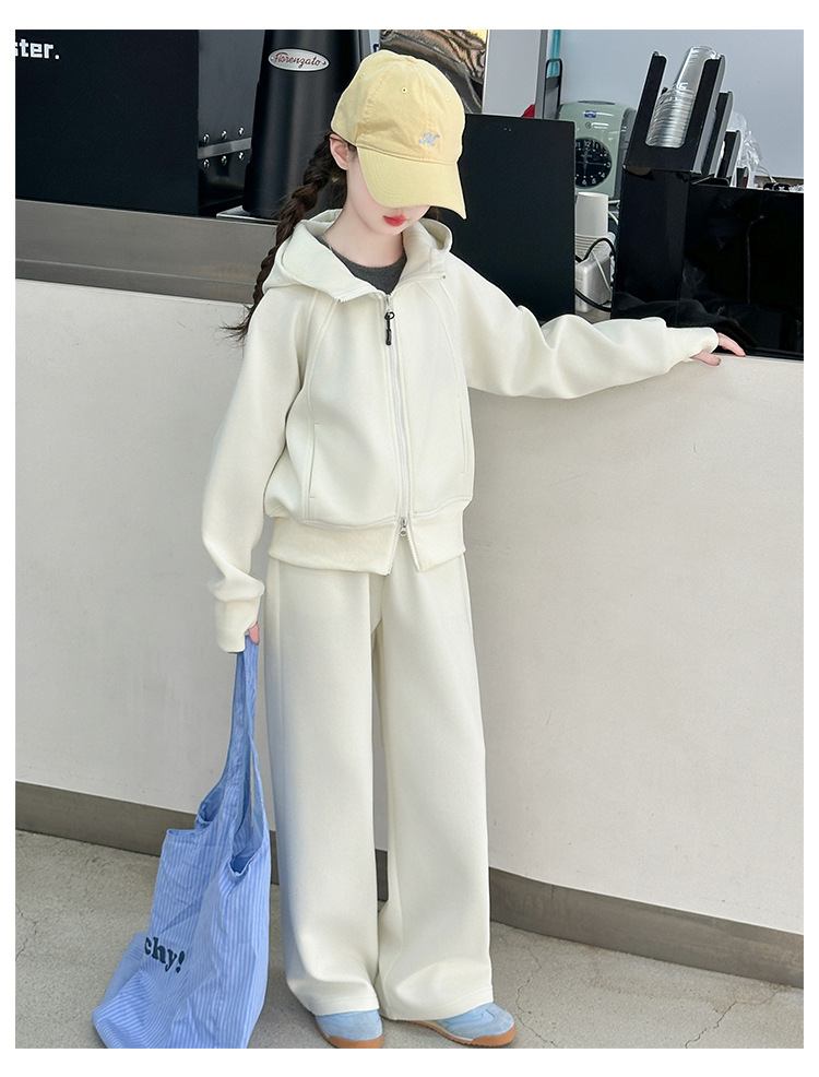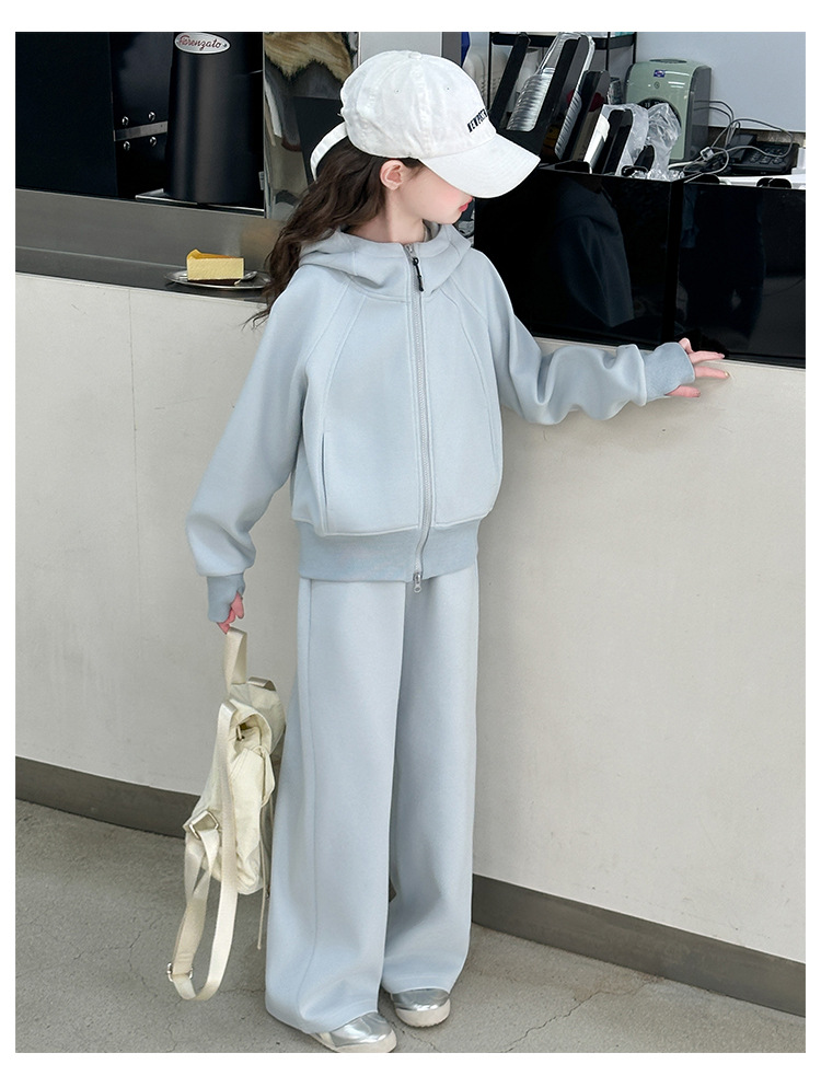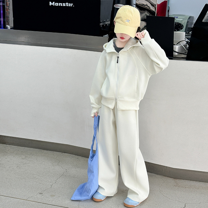 걸스 봄웨어 세트 2025 새로운 한국 레저 스포츠웨어 큰 어린이 서양식 스트리트 스웨트 셔츠 투피스 패션