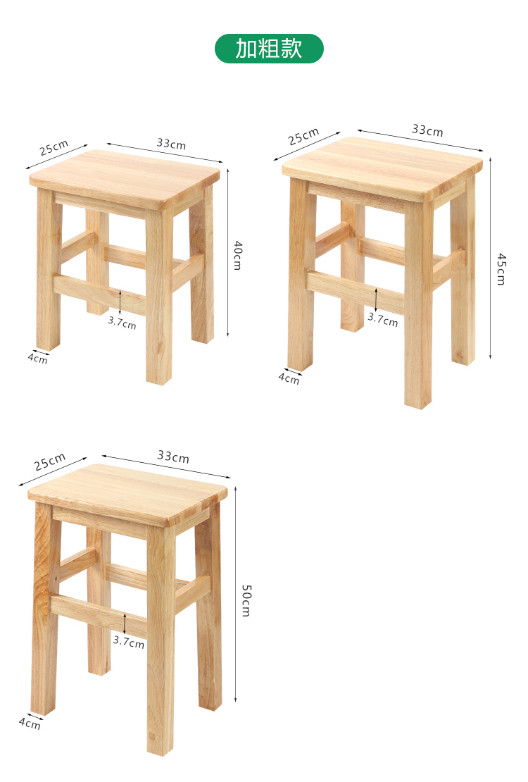 • 전체 고무나무 강화 두꺼운 사각 스툴 50cm★