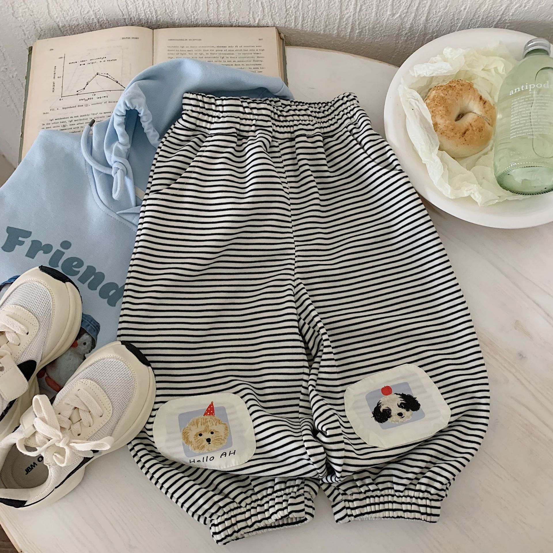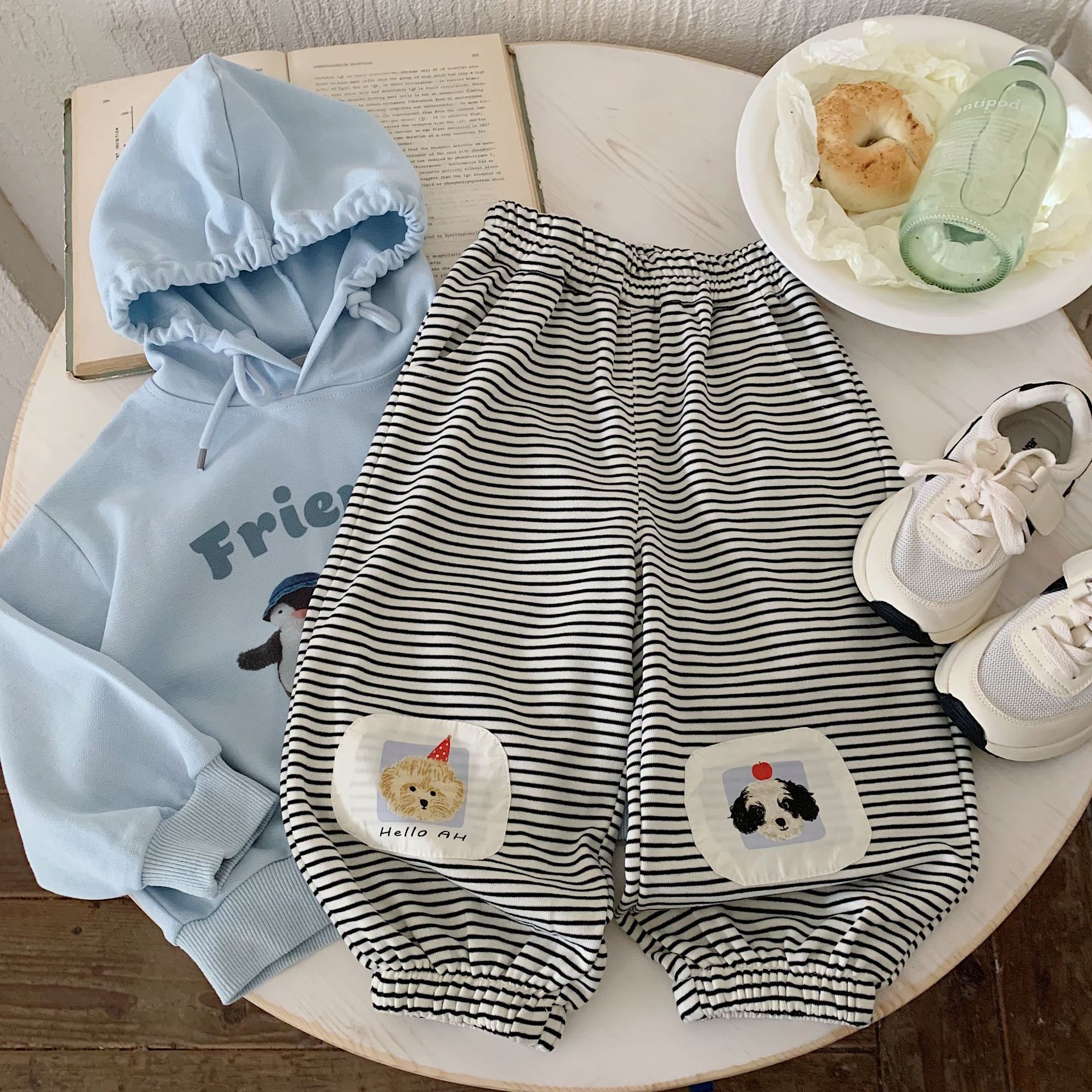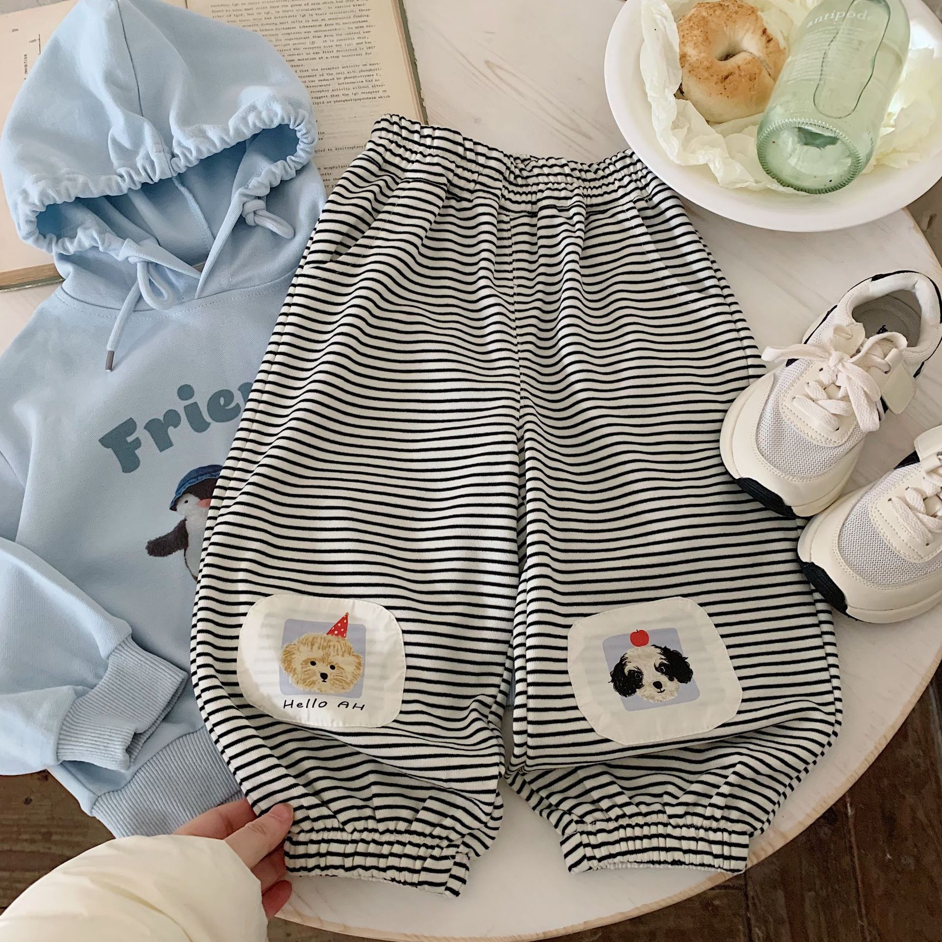 어린이 줄무늬 바지 2025 봄 소년과 소녀 한국 스타일 운동복 아기 서양식 만화 바지 클래식 올 매치 바지스토어 가기