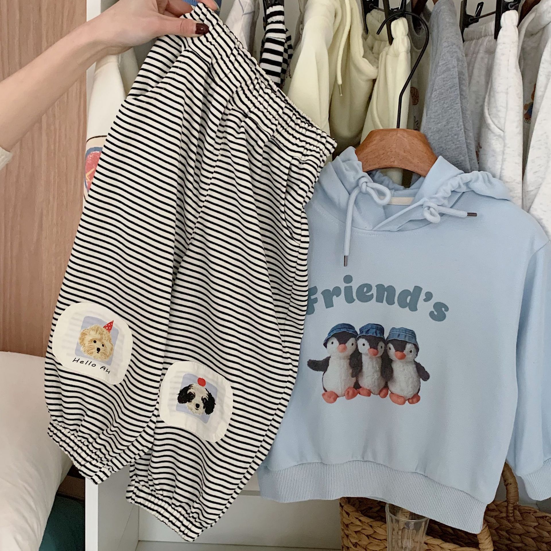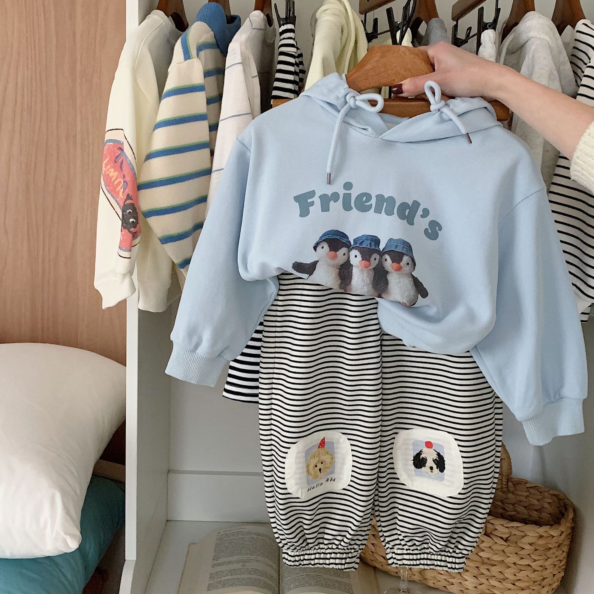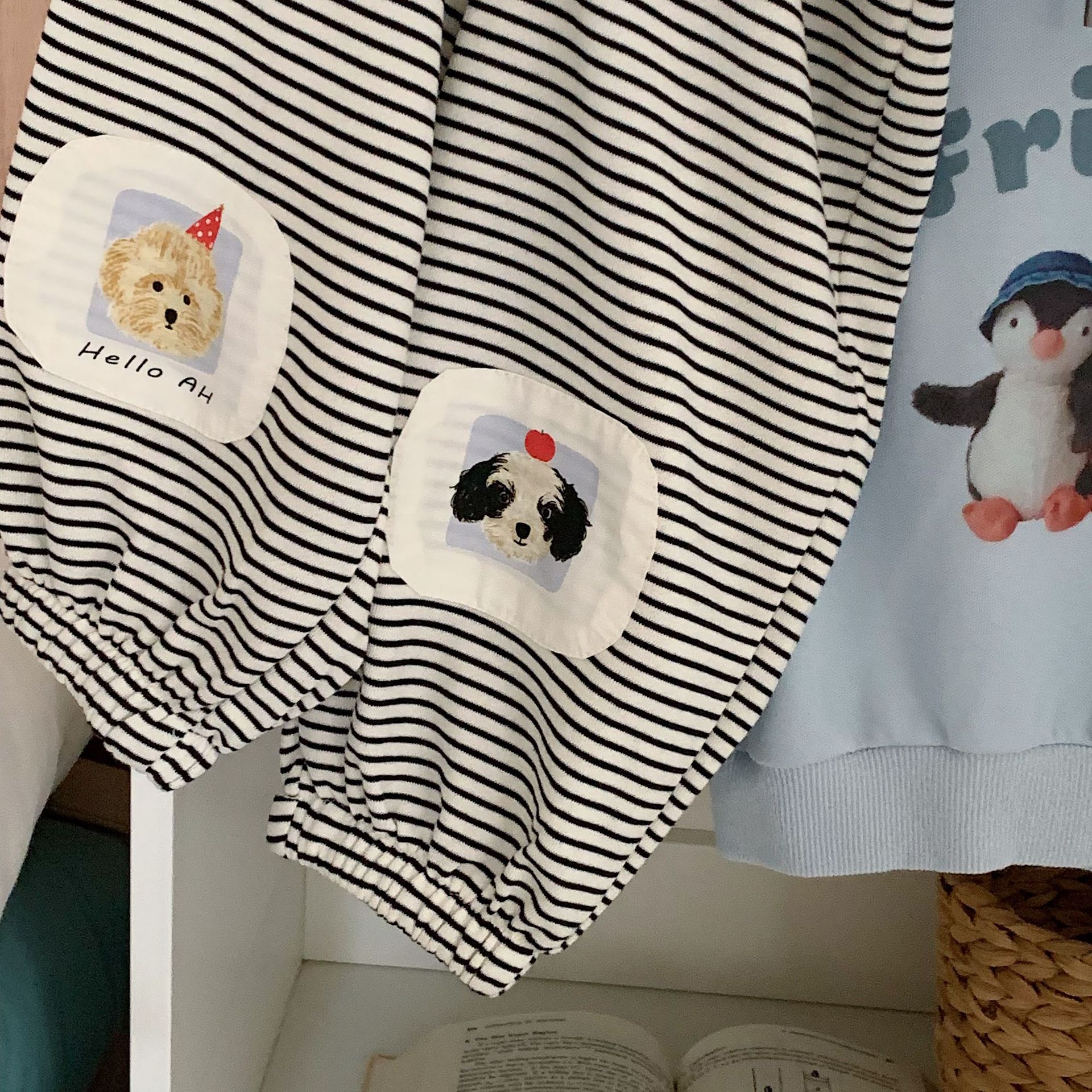 어린이 줄무늬 바지 2025 봄 소년과 소녀 한국 스타일 운동복 아기 서양식 만화 바지 클래식 올 매치 바지스토어 가기