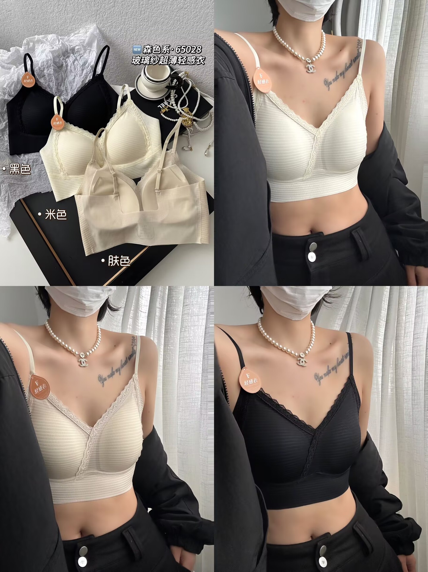 유리 원사 레이스 아름다운 뒤 프렌치 슬링 랩 가슴 고정 컵 파름 소프트 지원 Rimless 튜브 65028