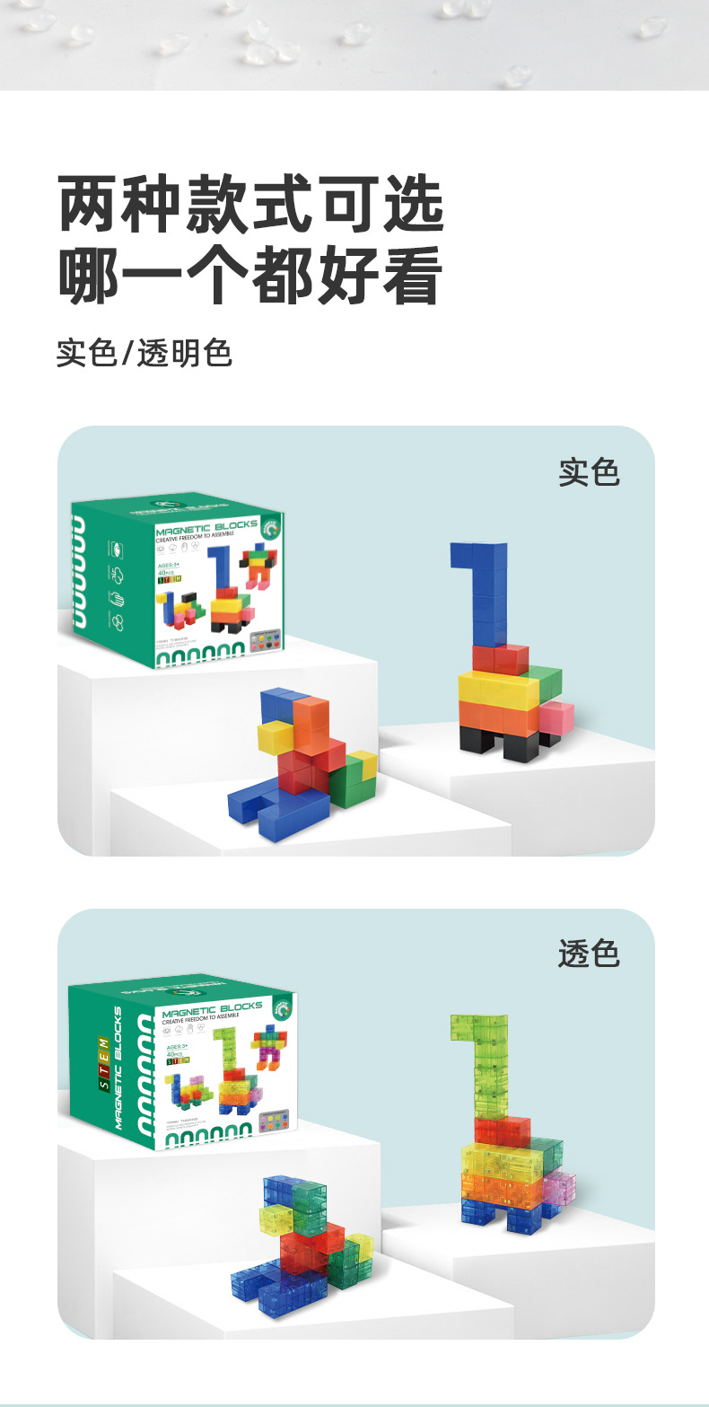 • 자석사각형 빌딩블록-40PCS(투명색상)