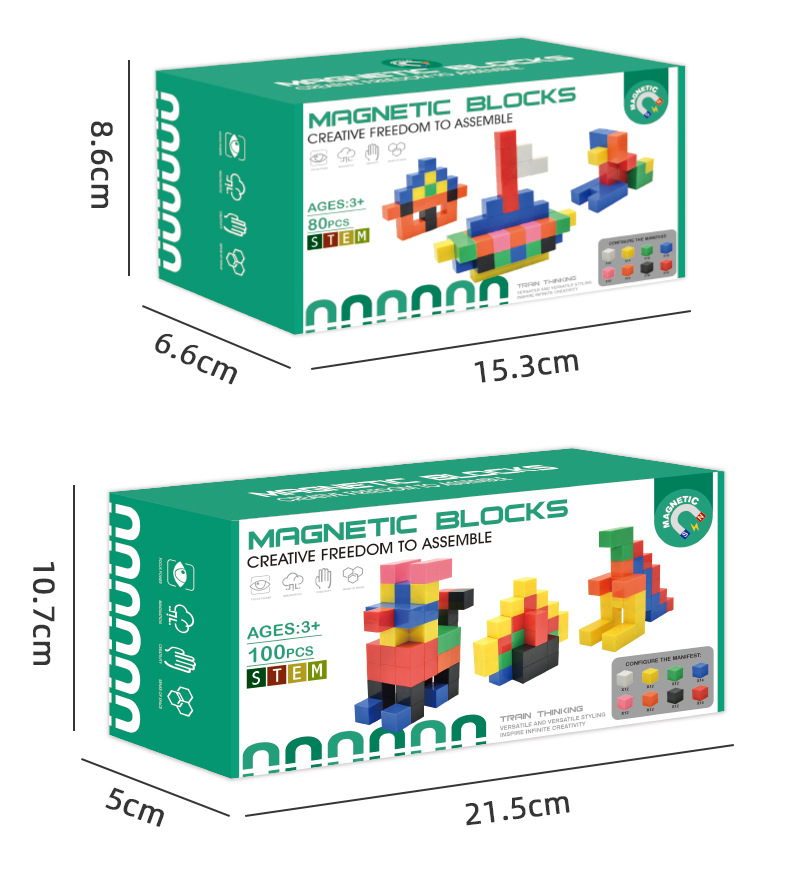 • 자석 사각형 빌딩 블록-80PCS (단색)