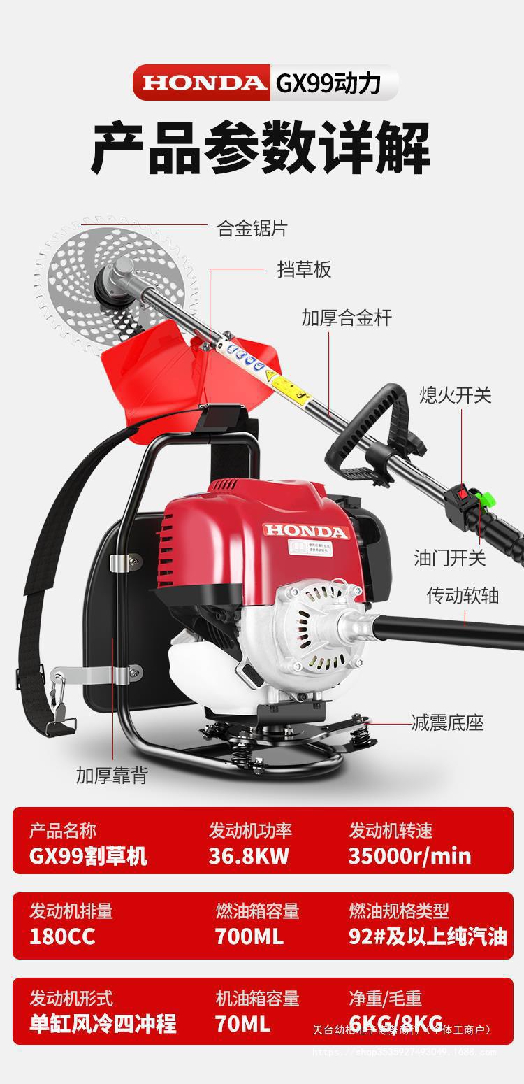 GX99 고출력 4 행정 배낭 잔디 깎는 기계 제초 및 쌀 깎기 다기능 황무지 희소함