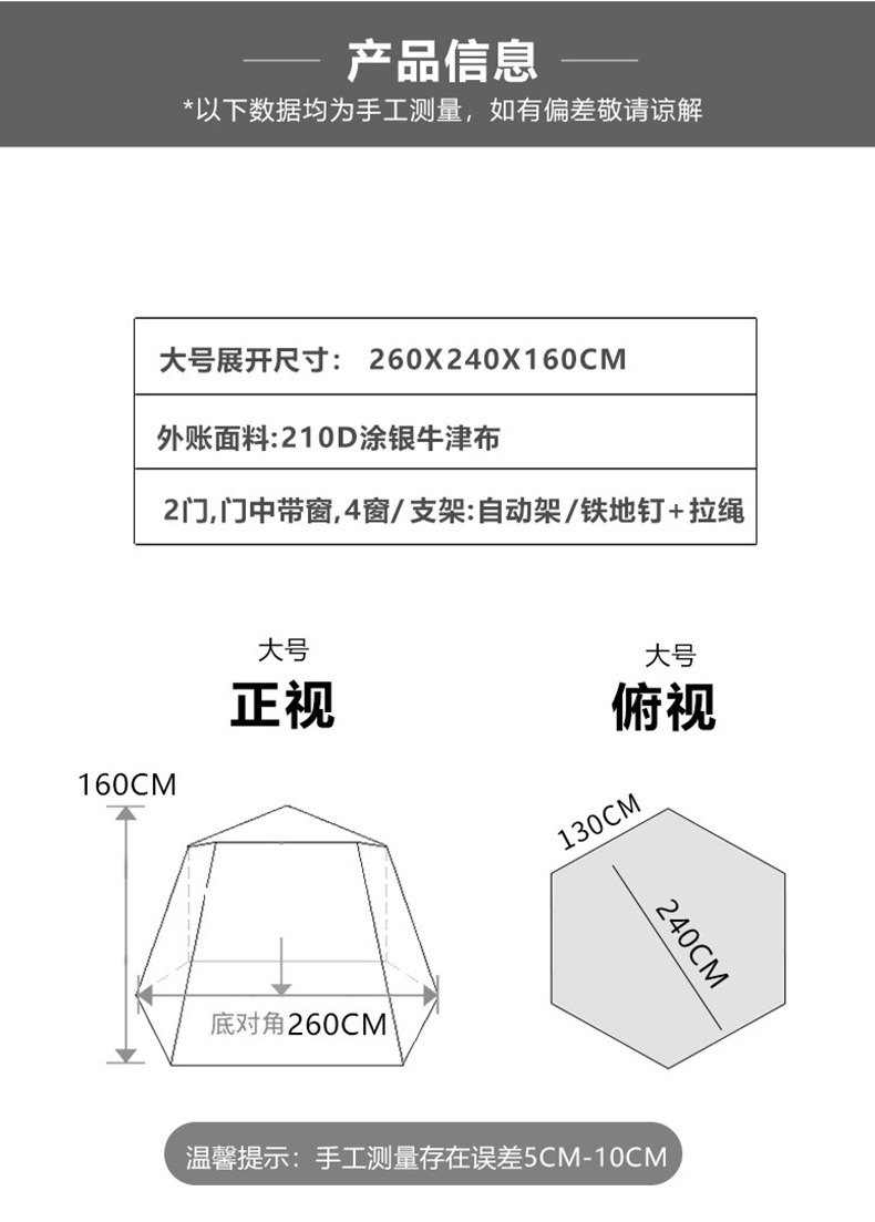 야외 캠핑 완전 자동 휴대용 텐트 야외 캐노피 육각형 캠핑 큰 공간 방수 텐트 공장 도매