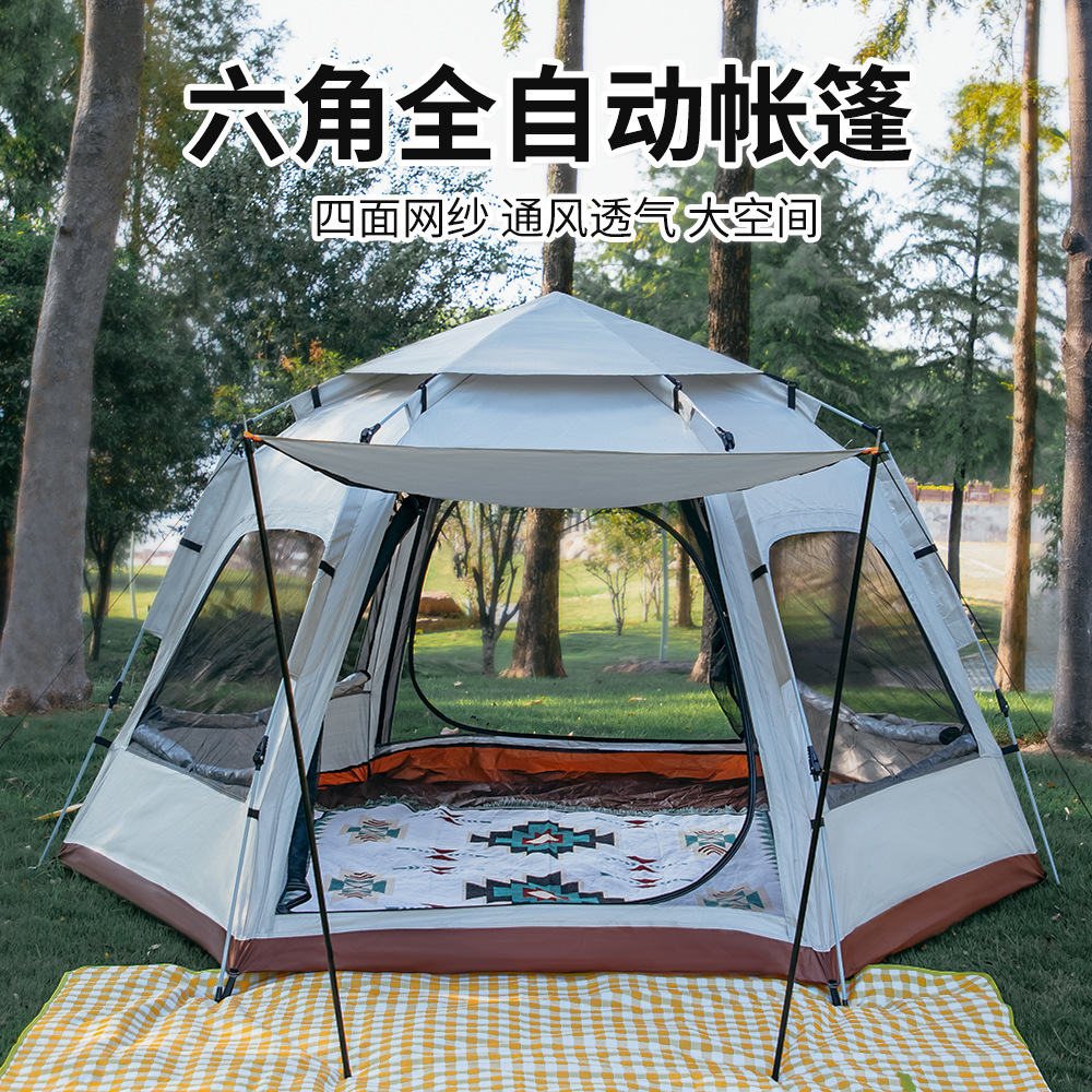 야외 캠핑 완전 자동 휴대용 텐트 야외 캐노피 육각형 캠핑 큰 공간 방수 텐트 공장 도매스토어 가기