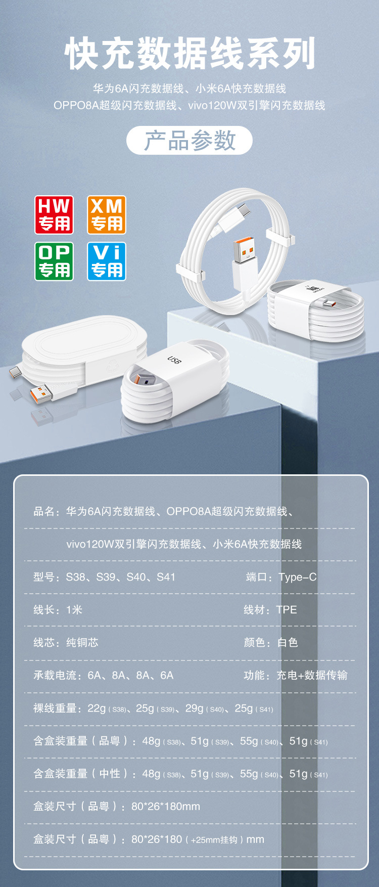 • VIVO/IQOO 플래시 충전 케이블에 적합한 1M [S40 광동 박스형]