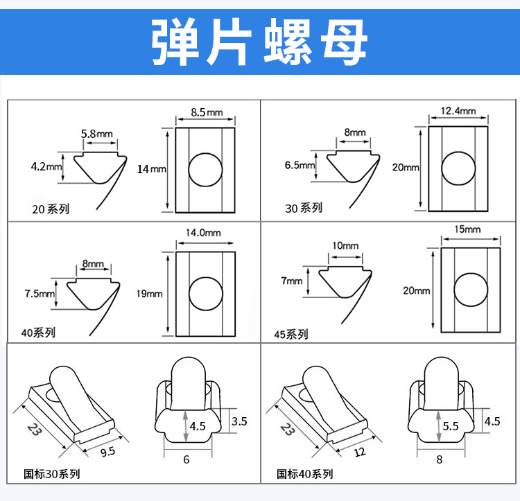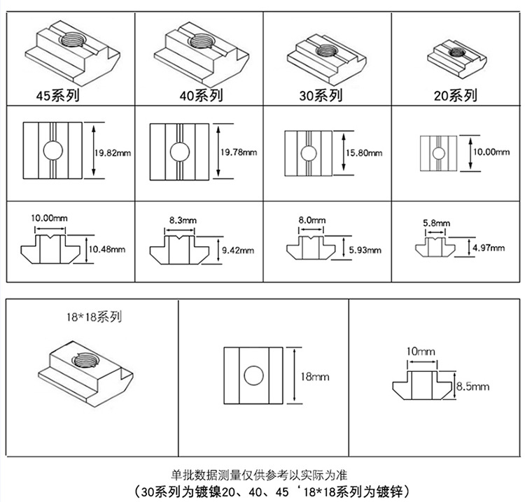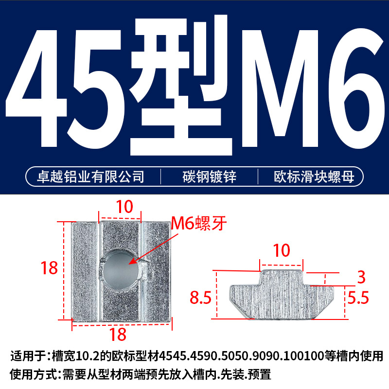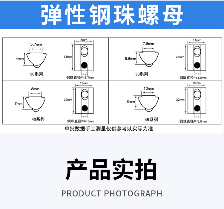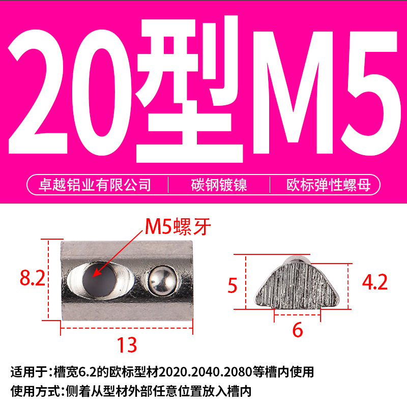 M & 알루미늄 너트 T 자형 슬라이더 스틸 볼 탄성 파편 유럽 표준 국가 표준 광장 2304045M6M8 해머 헤드