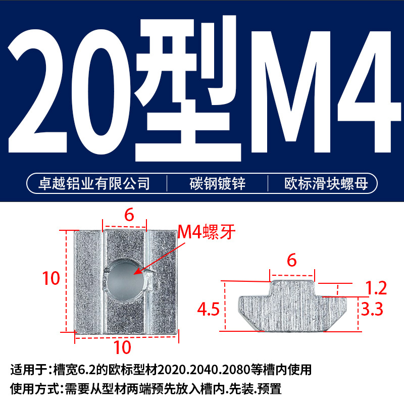 • 유럽규격 슬라이더 너트형 20-M4 [100개]