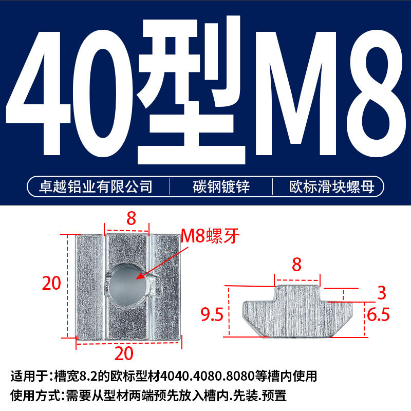 • 유럽 규격 슬라이더 너트 유형 40-M8 [20개]