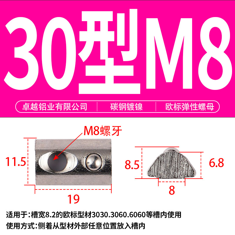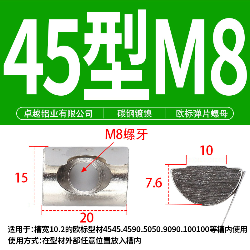 M & 알루미늄 너트 T 자형 슬라이더 스틸 볼 탄성 파편 유럽 표준 국가 표준 광장 2304045M6M8 해머 헤드스토어 가기
