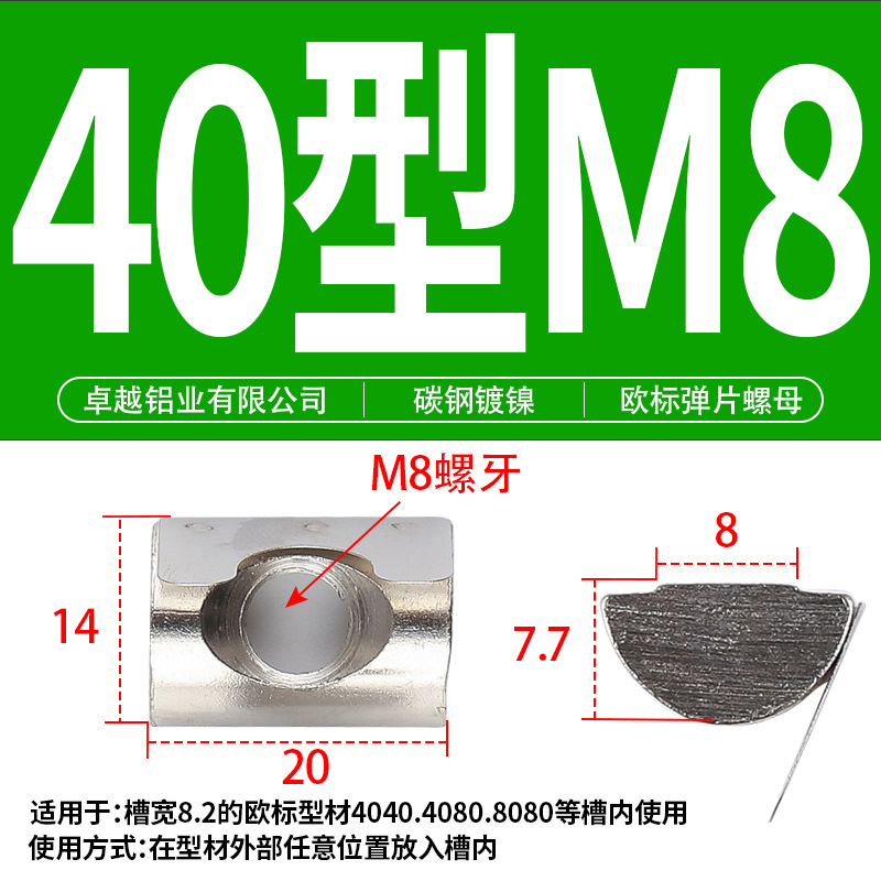 • 국가 표준 파편 너트 유형 40-M8 [20개]