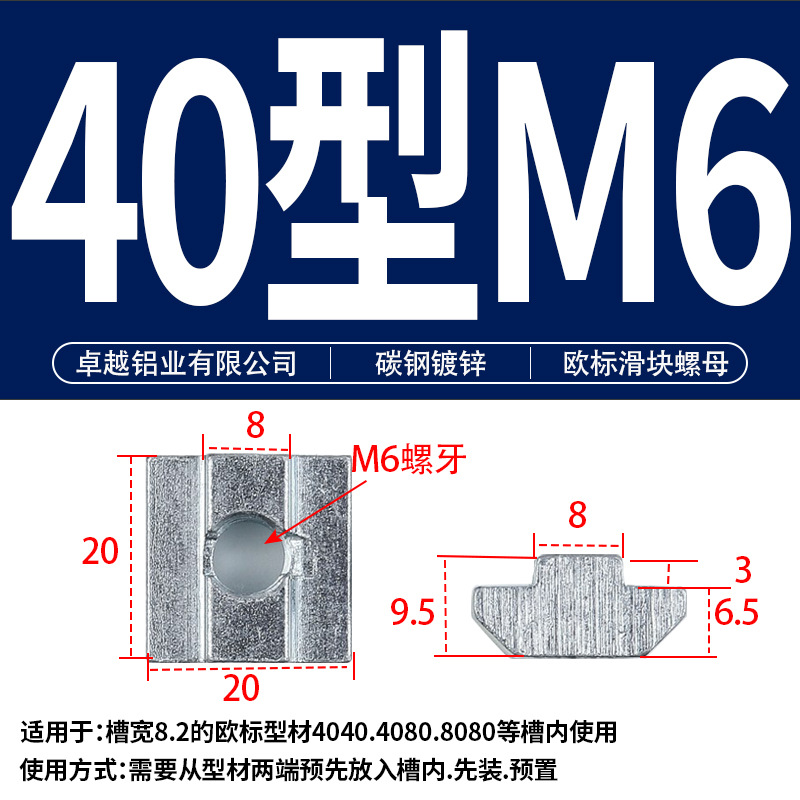 • 유럽 규격 슬라이더 너트 유형 40-M6 [20개]