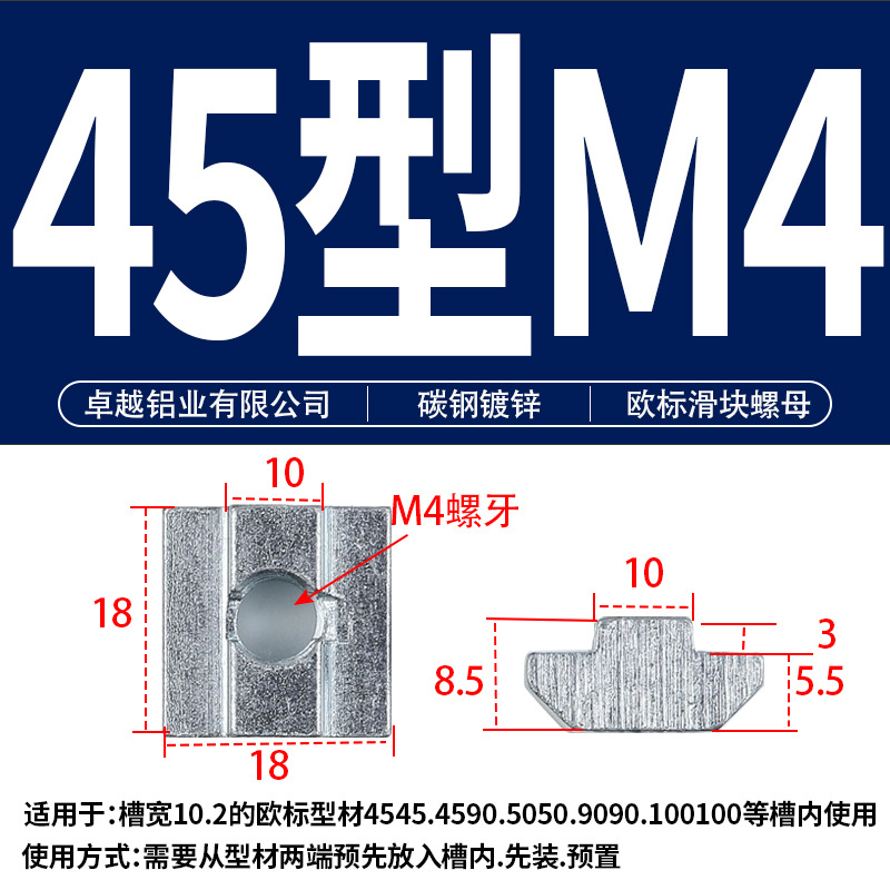 • 유럽 규격 슬라이더 너트 유형 45-M4 [20개]