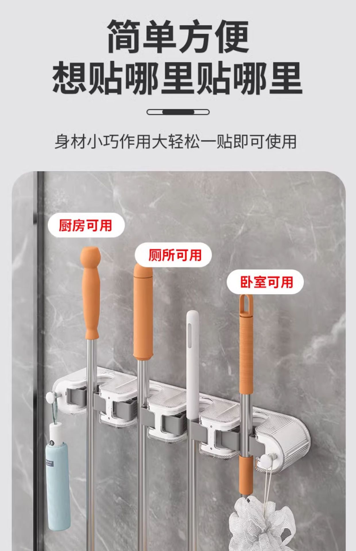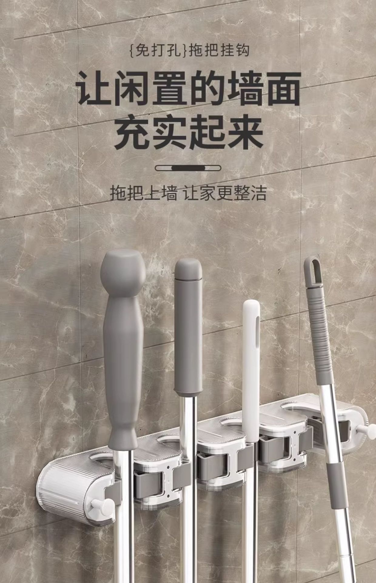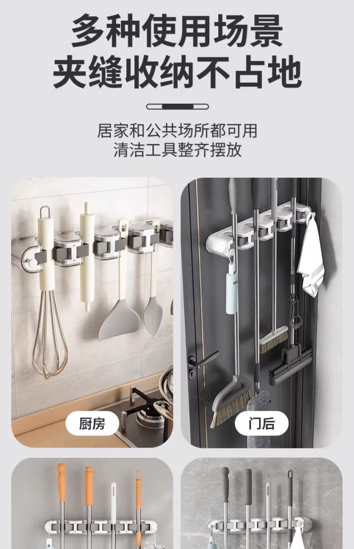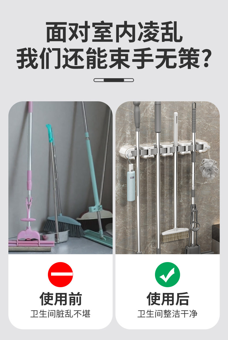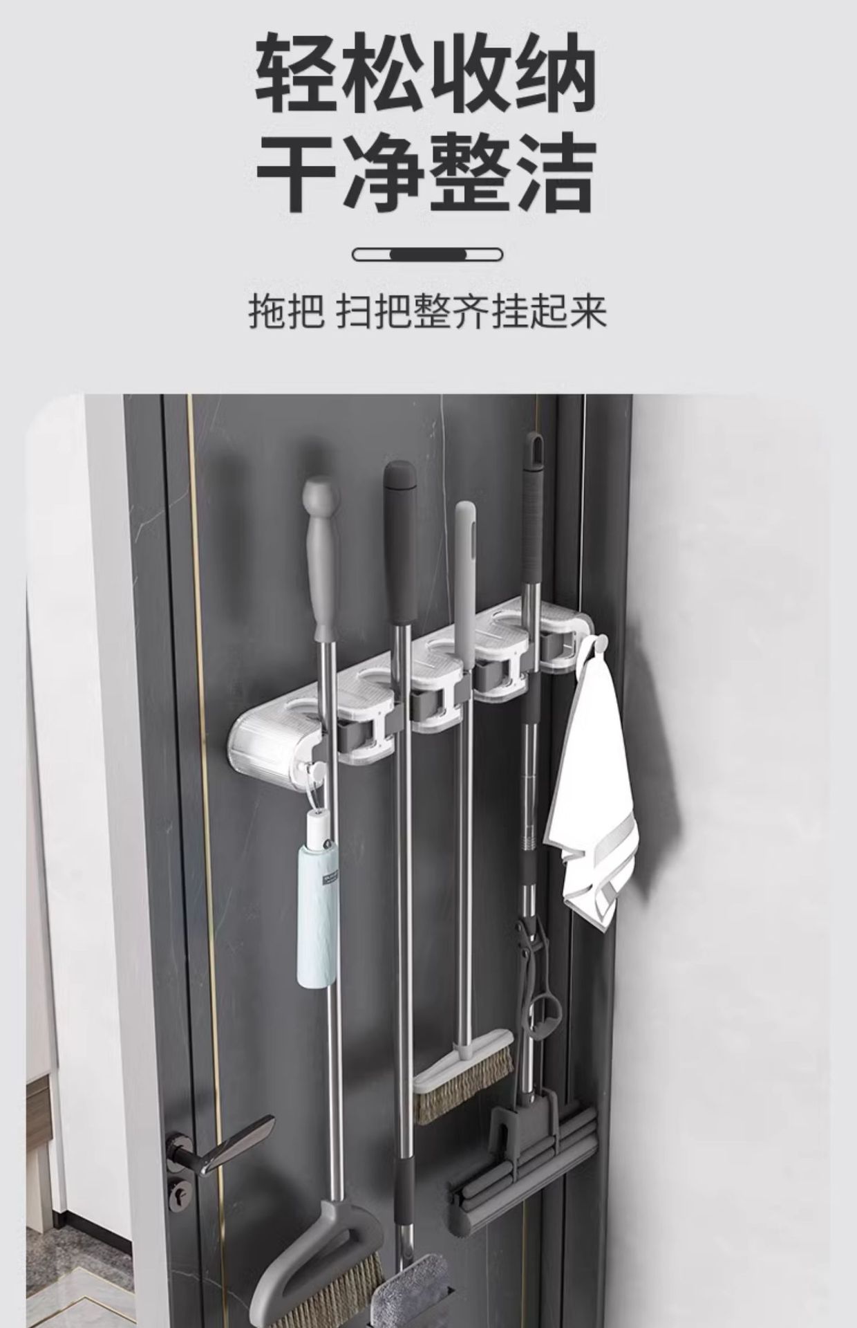 다기능 펀치 프리 걸레 클립 벽걸이 보관 랙 걸레 빗자루 보관 용 옷걸이 욕실 걸레