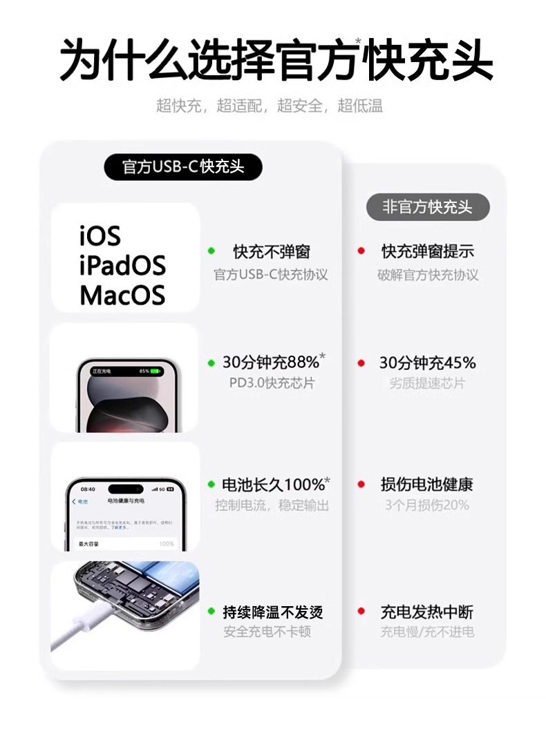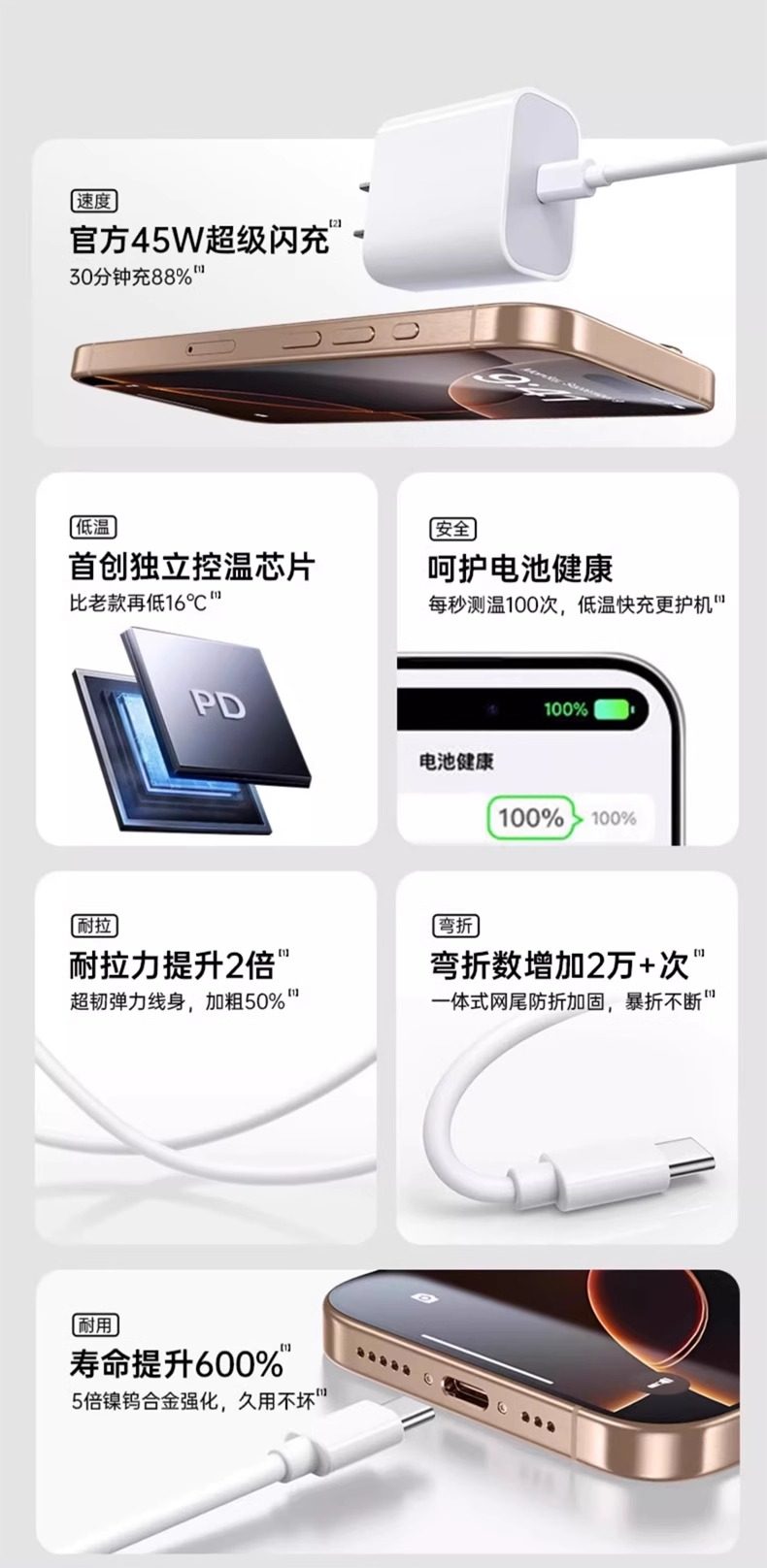 • 공식 고속 충전 [15/16 세트] 30W 고속 충전 헤드 + 1.0m 더블 C 고속 충전 케이블