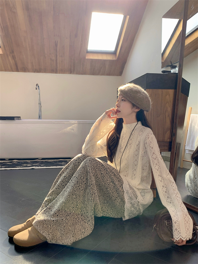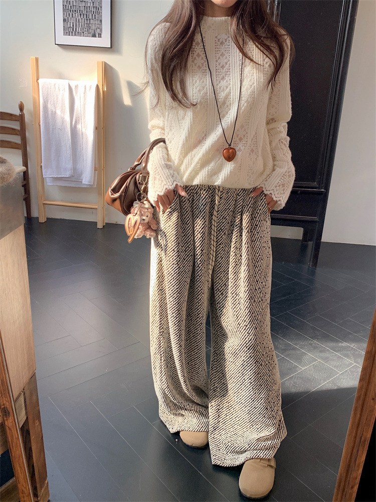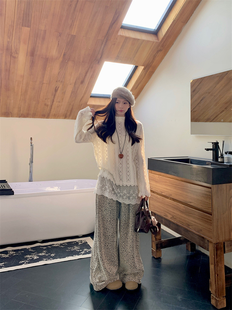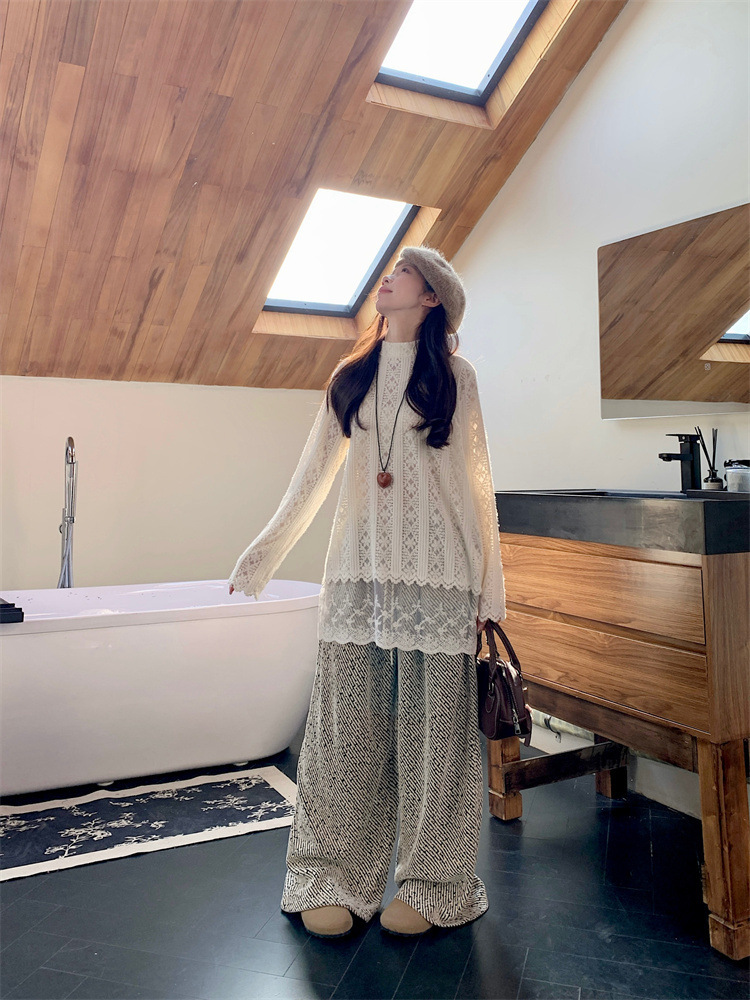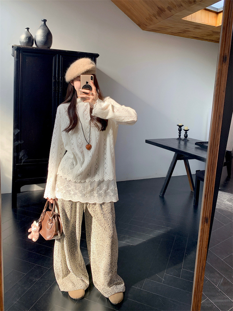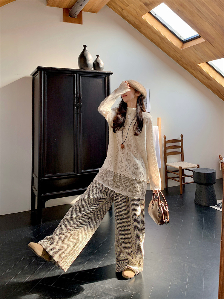 리얼 샷 ~ 기질 조커 레이스 바닥 셔츠 여성의 작은 하이 칼라 탑 느슨한 걸레 바지 스트레이트 팬츠 세트 77522스토어 가기