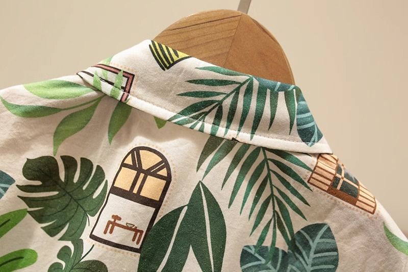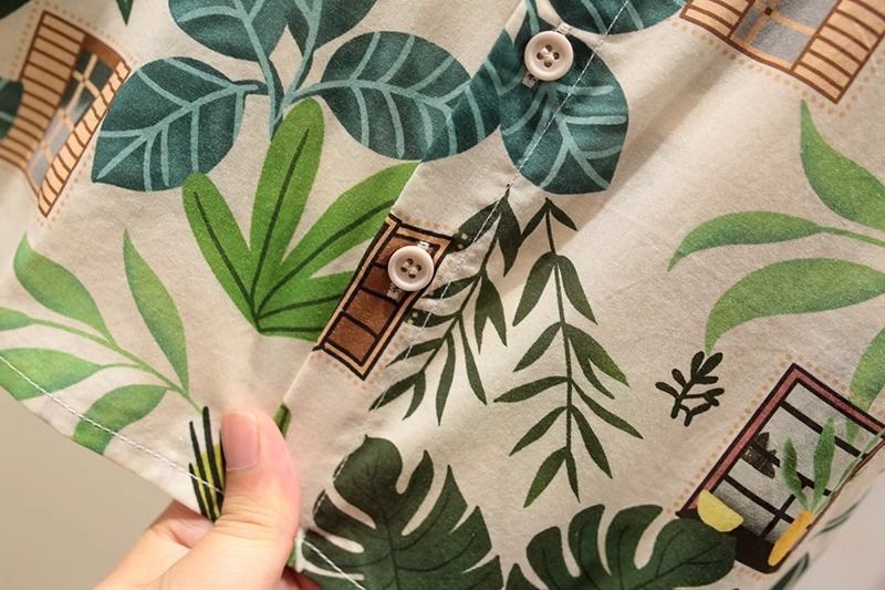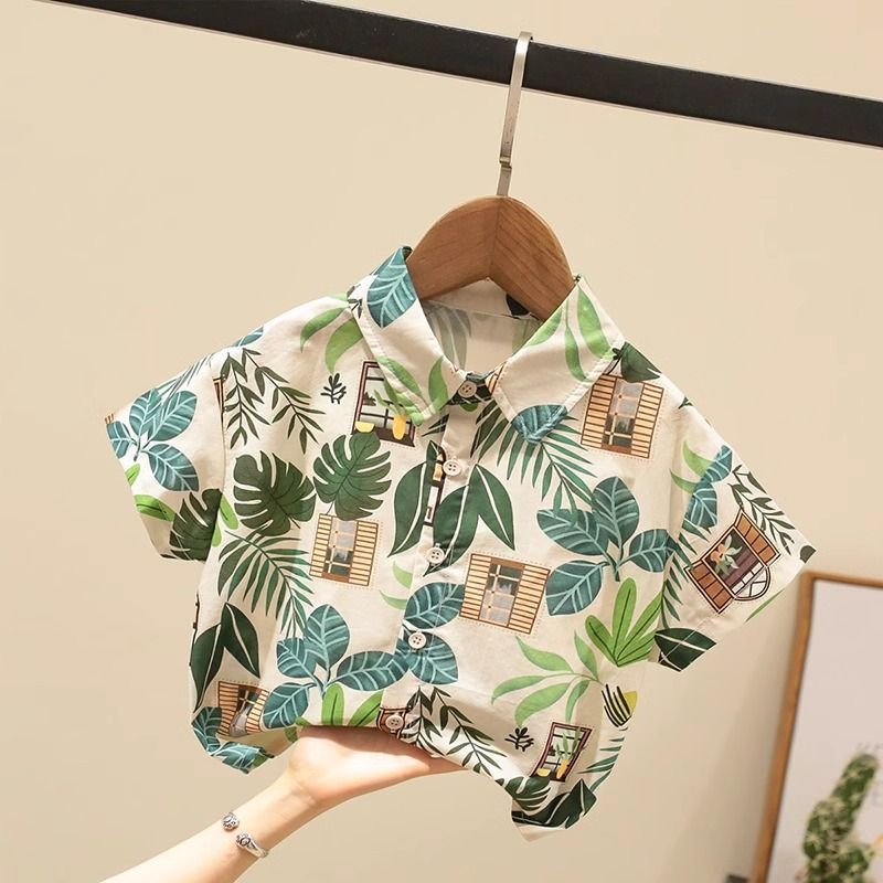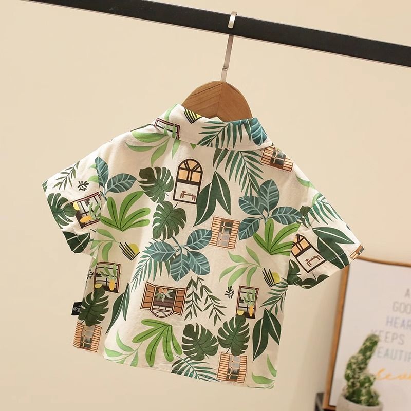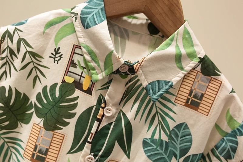 모리 스타일 소년 홍콩 스타일 빈티지 꽃 셔츠 여름 2025 새로운 어린이 아기 휴일 스타일 해변 셔츠스토어 가기