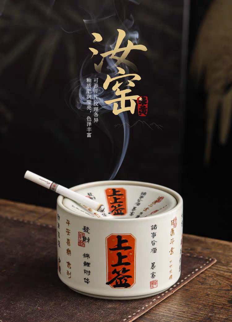 汝窑上上签烟灰缸防飞灰茶洗陶瓷茶水茶渣缸水盂杯洗家用茶具配件